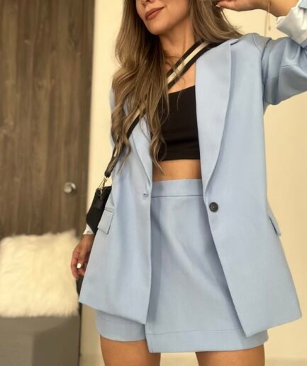Ref. 069: Set blazer semioversize y falda/short – azul nude