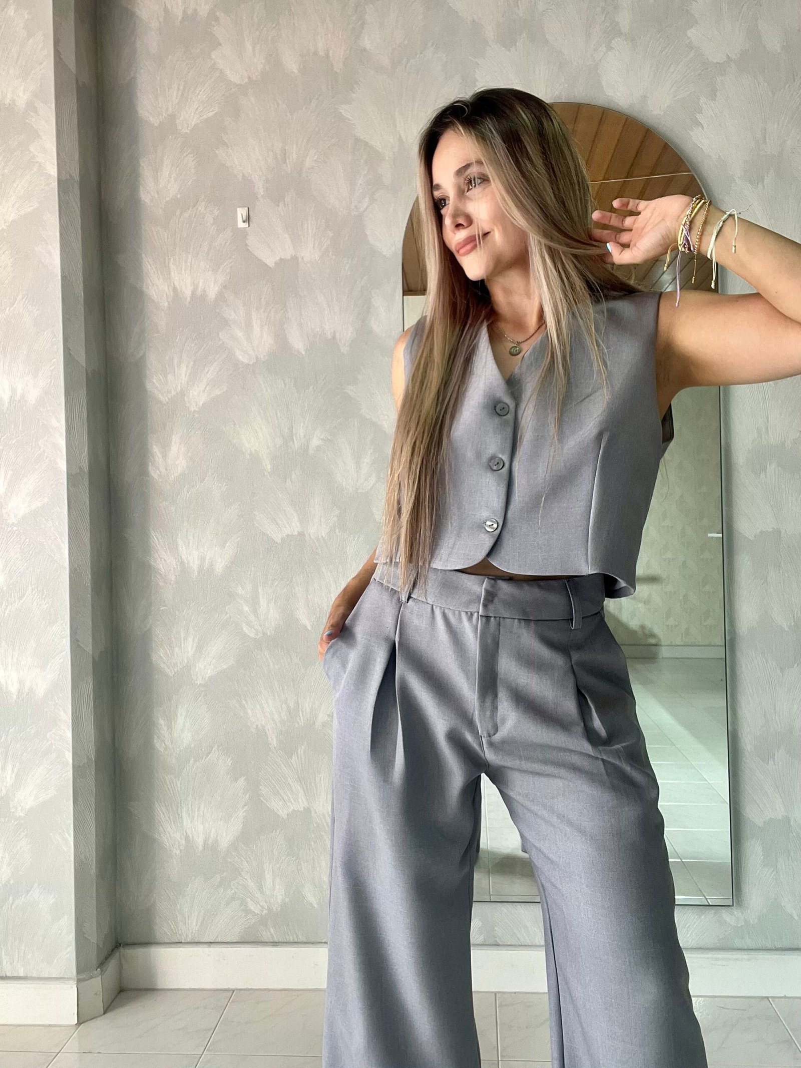 Ref. 022: Set pantalón y chaleco - gris claro