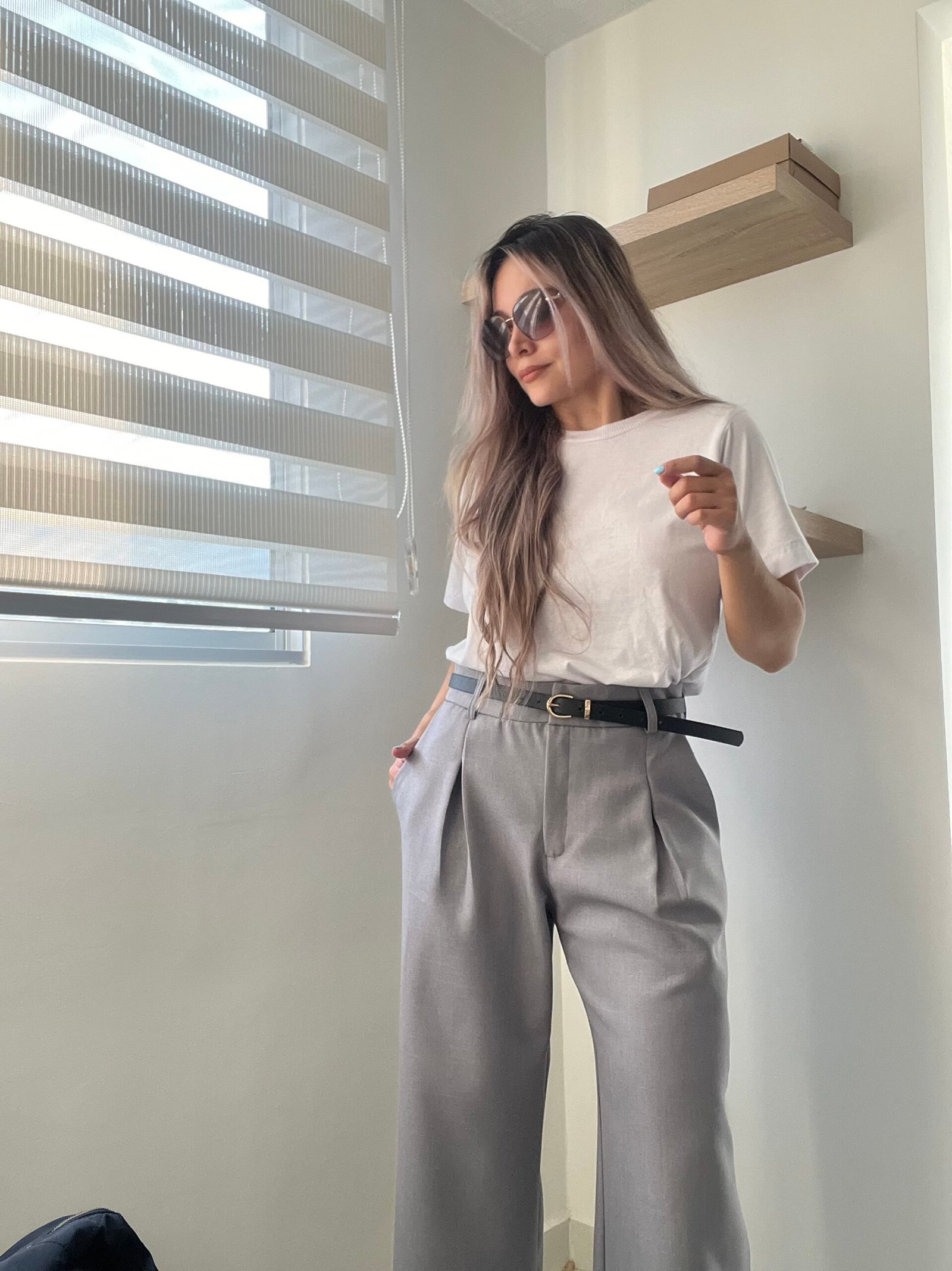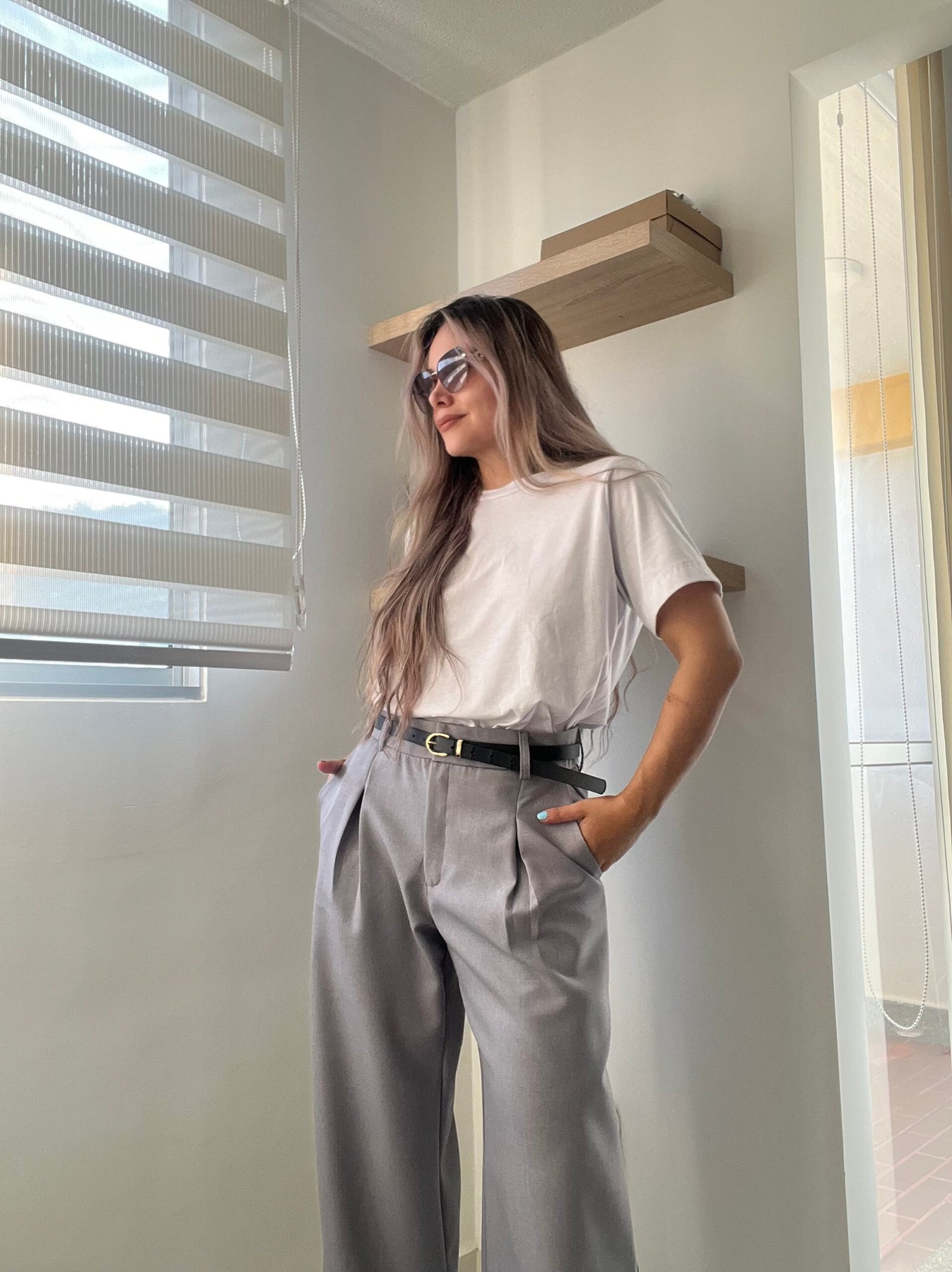 Pantalón recto formal. Tiene prense delantero en tablón y bolsillos en diagonal. En la parte de atrás tiene bolsillos ribete no funcionales.
