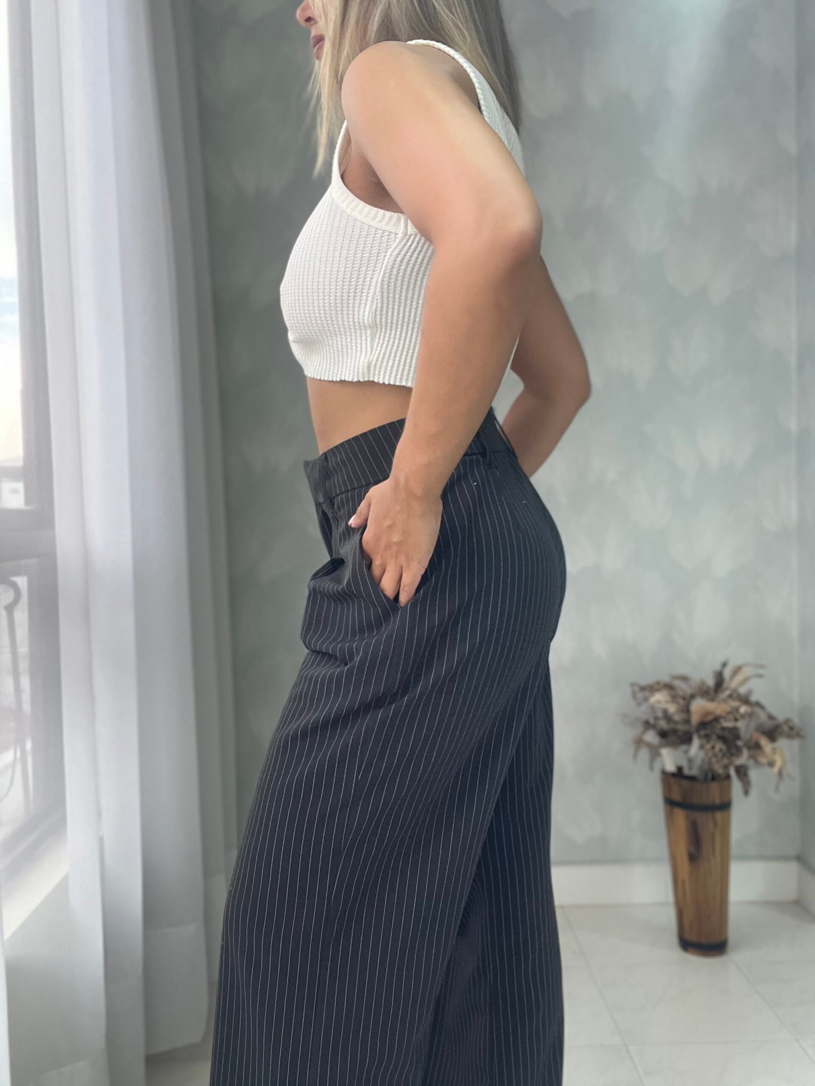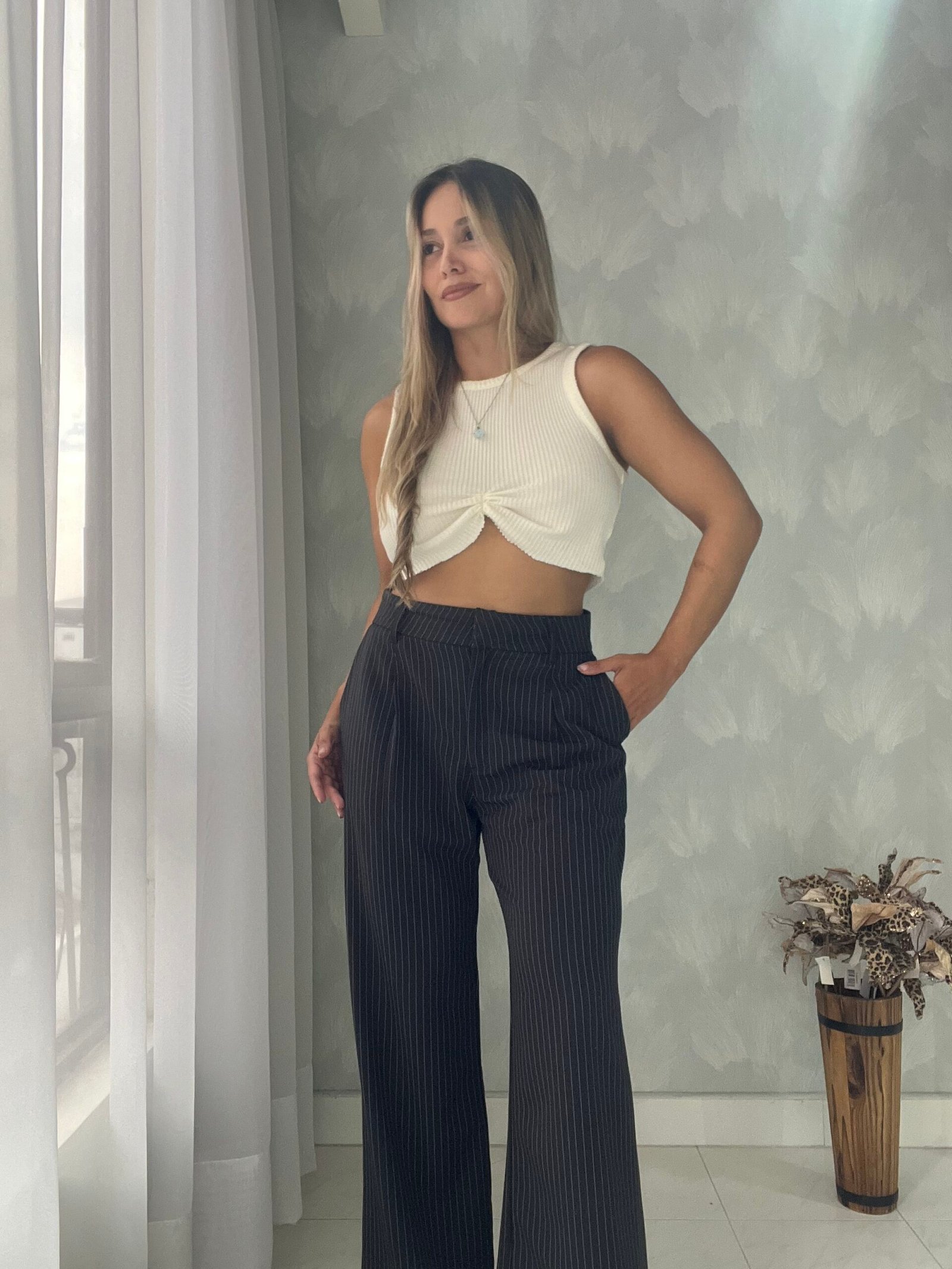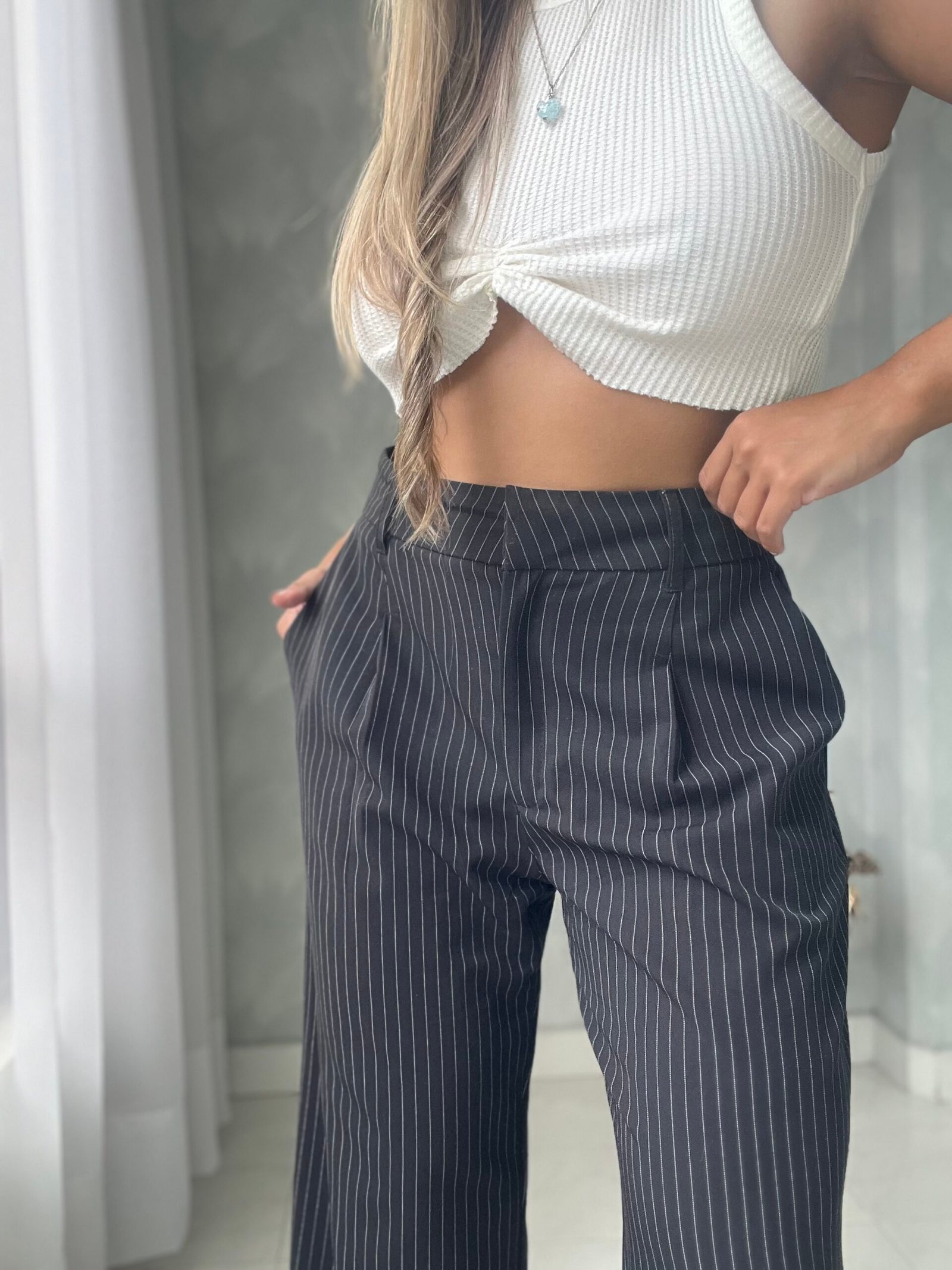 Ref. 050: Pantalón clásico recto - negro con rayas
