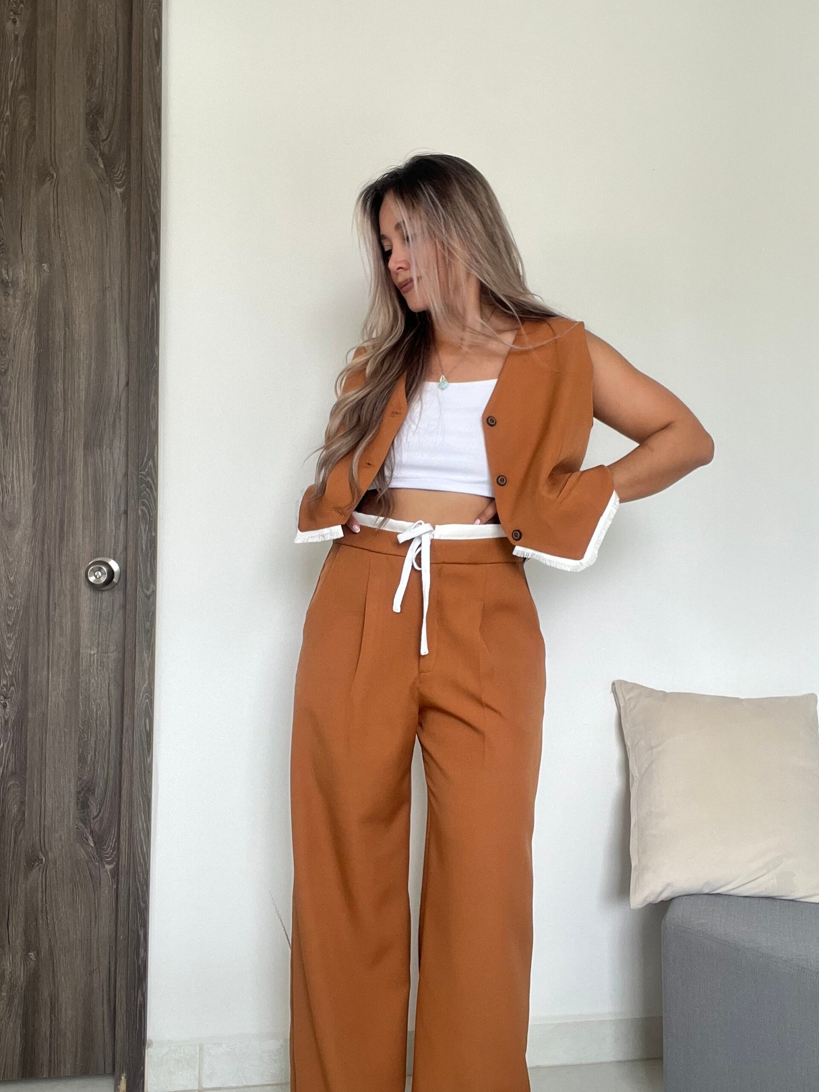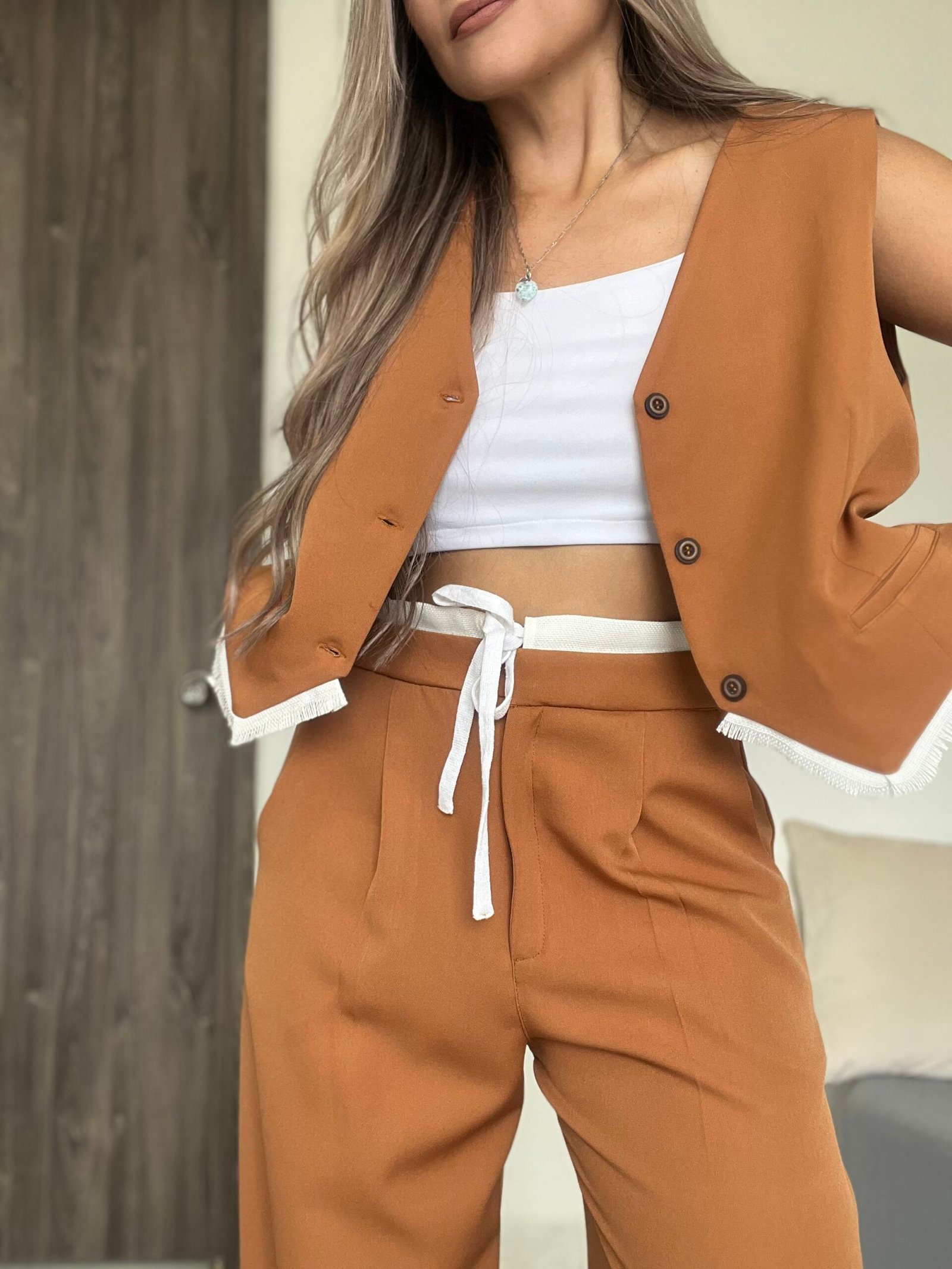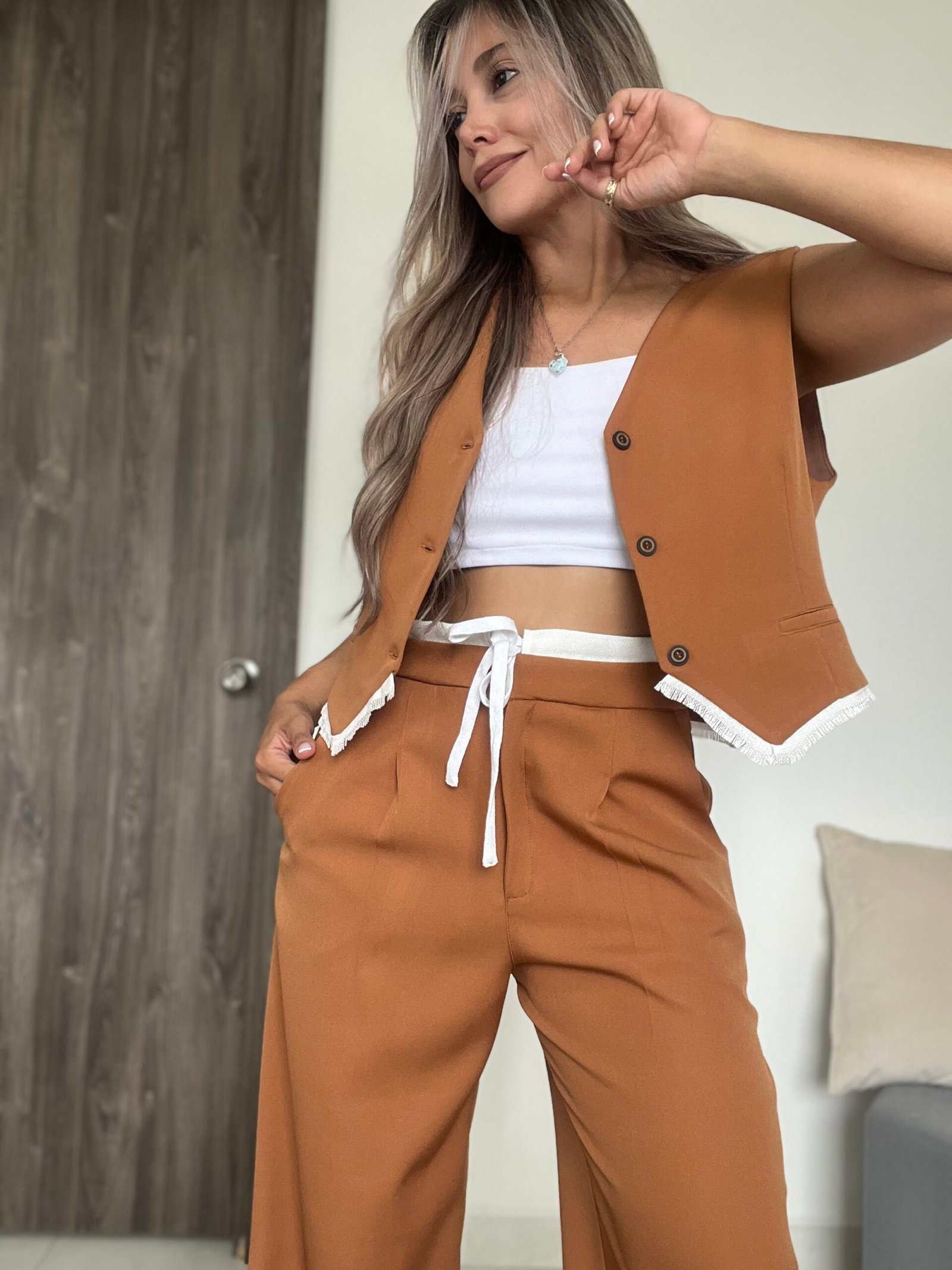 Ref. 041: Set pantalón y chaleco con flecos - miel