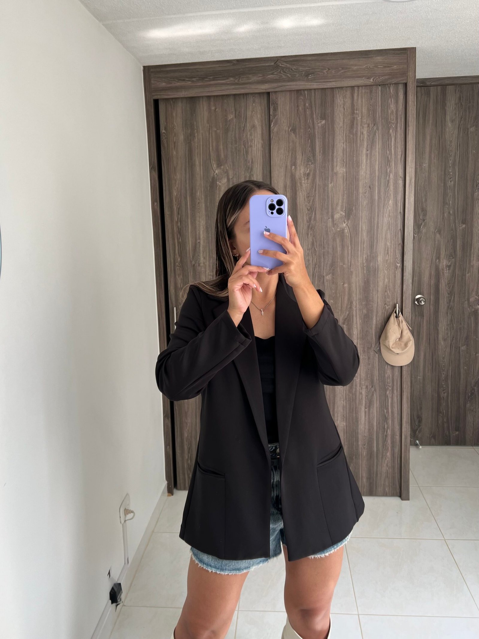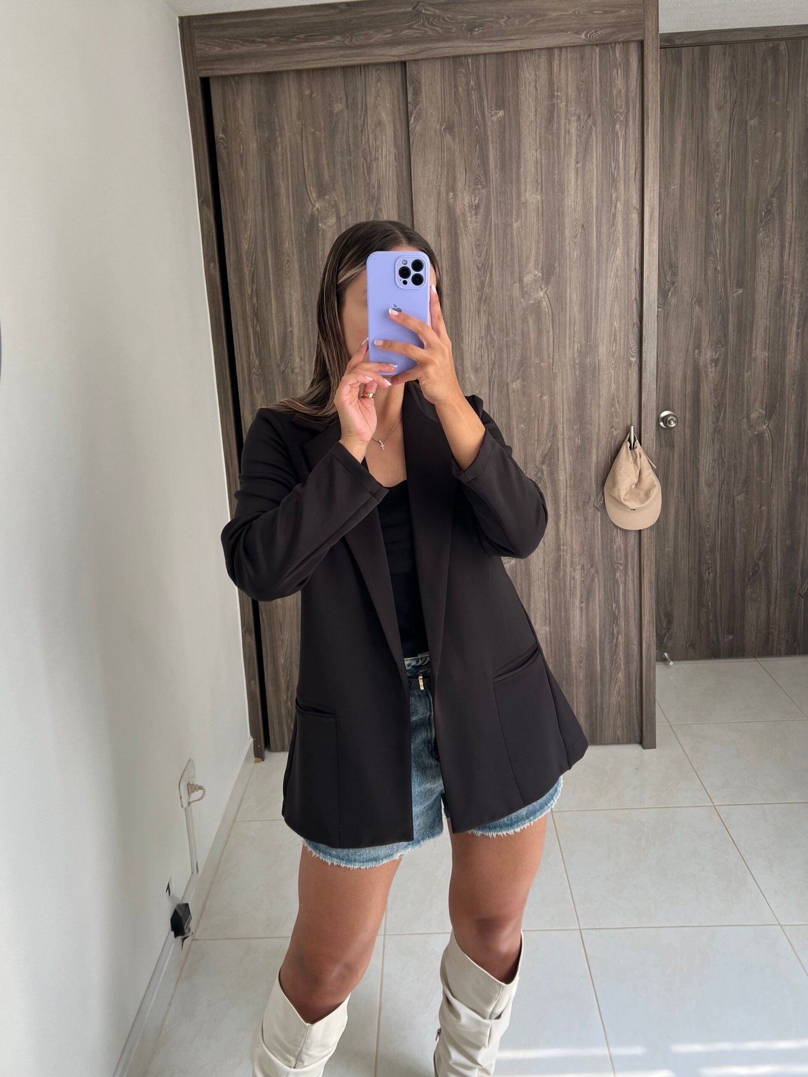 Blazer de horma semiceñida confeccionado en una tela strech que le permite sentirse muy cómodo. Lleva bolsillos de ribete usables asentados con una costura exterior. El cuello es de un diseño sport y la parte posterior va asentada con pinzas. Este es un blazer sencillo que no lleva forro interno.