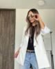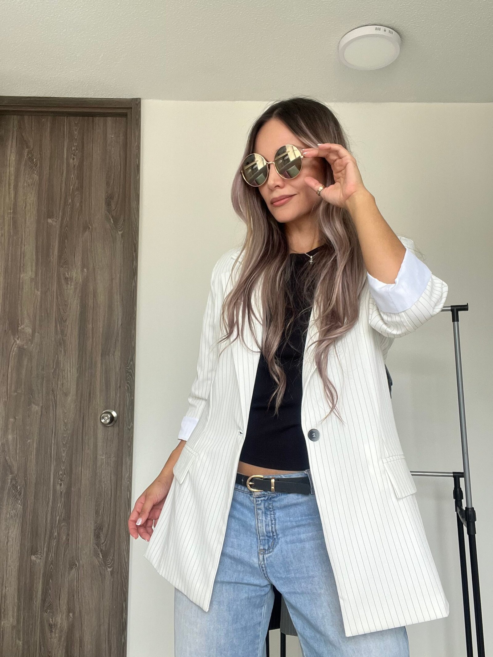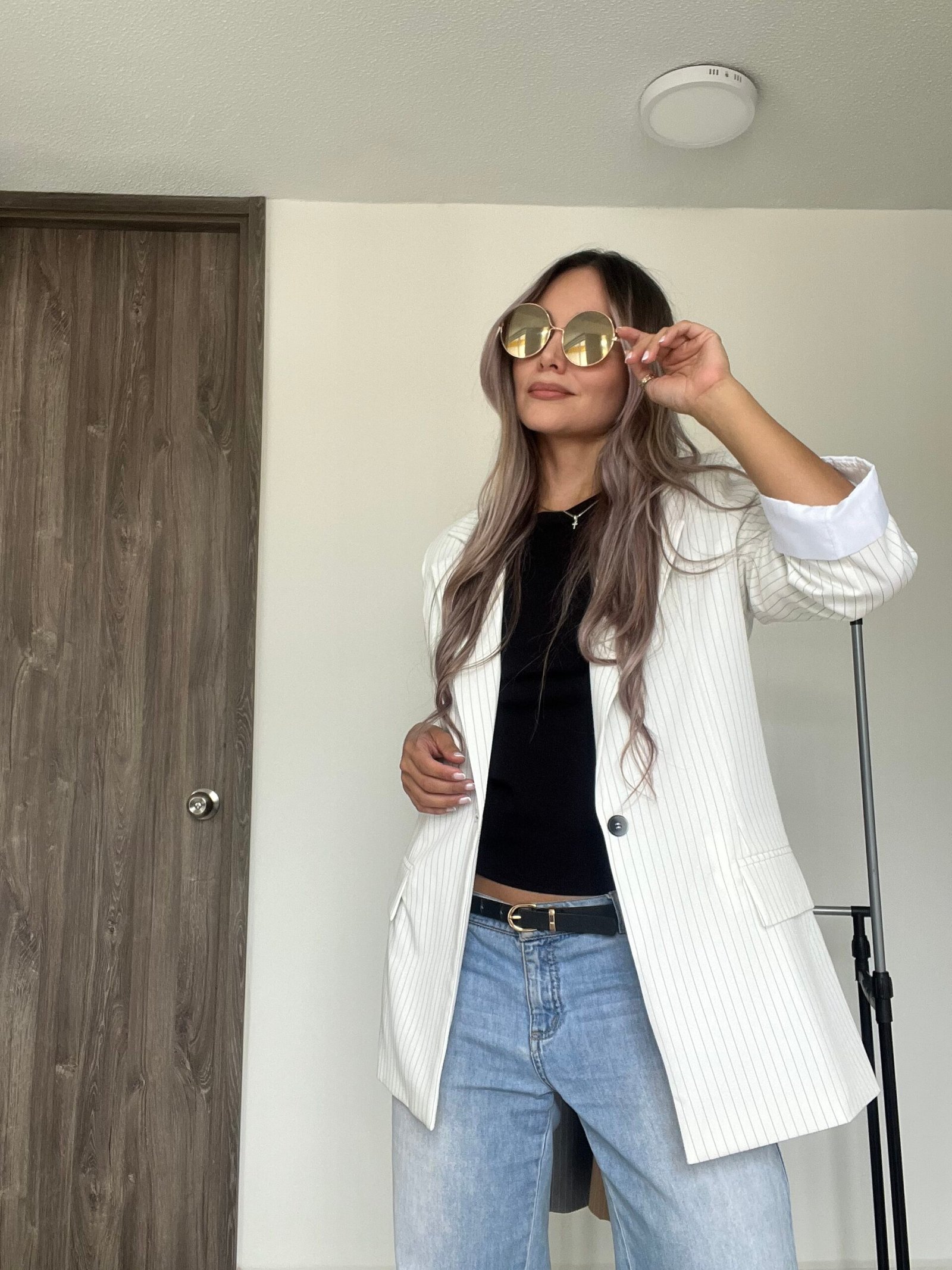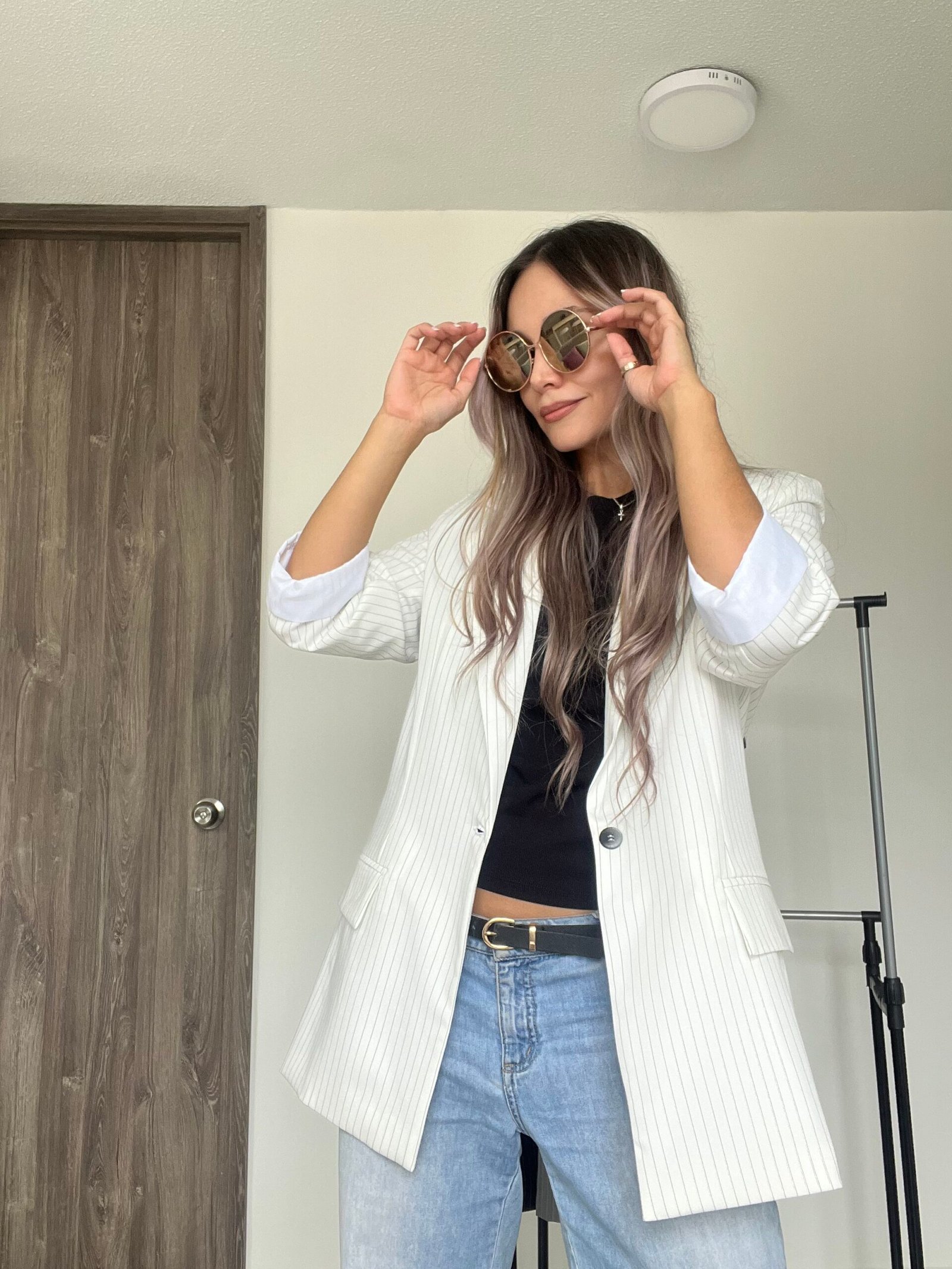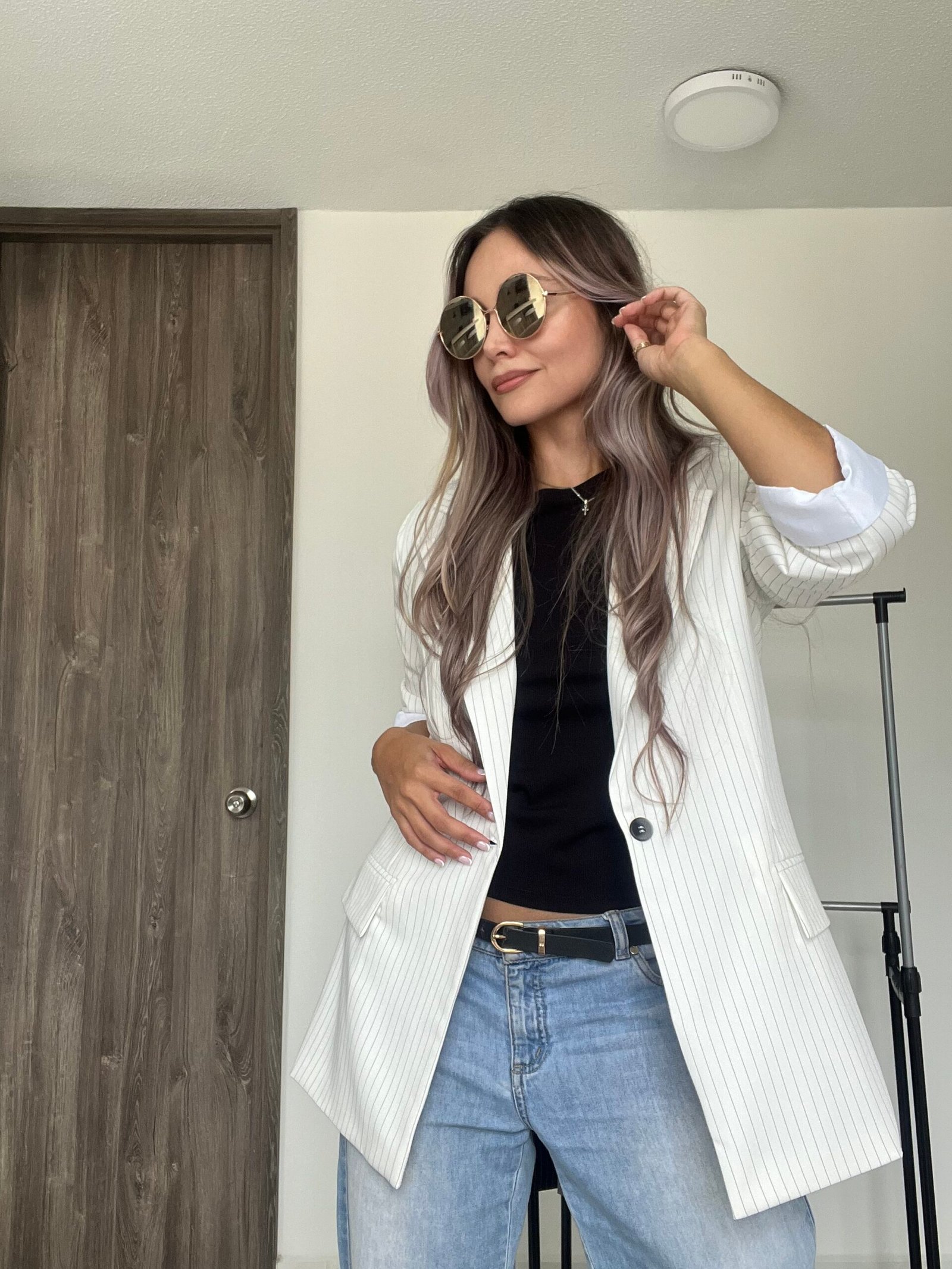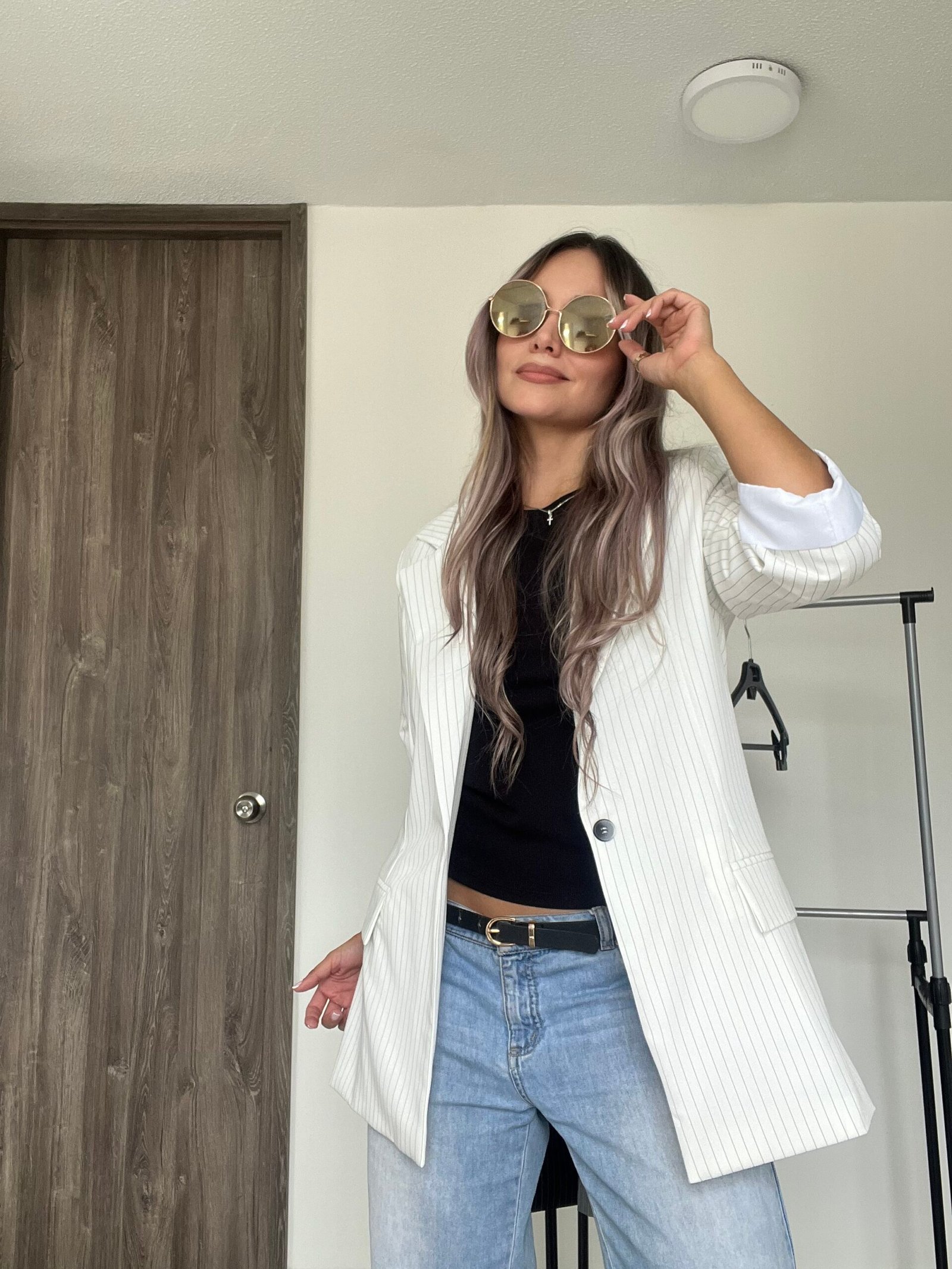 Ref. 050: Blazer semioversize manga 3/4 - blanco con rayas