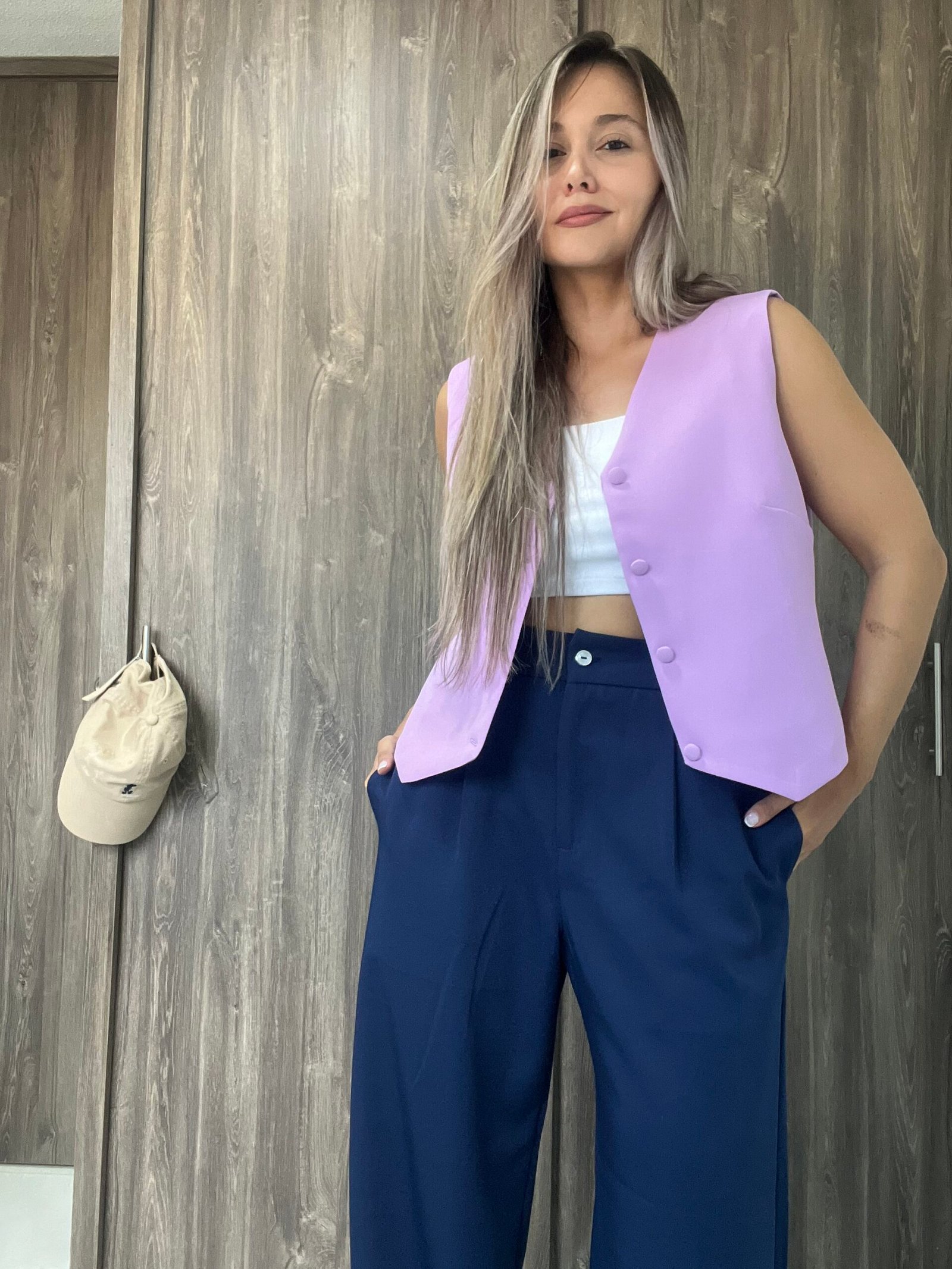 Pantalón con diseño suelto bota recta. Lleva prenses para darle más amplitud en las piernas y la cadera. Tiene una pretina anatómica que permite acentuar la cintura y cuenta con 4 centímetros de ruedo para aumentar o disminuir el largo según la estatura de la persona. Sus bolsillos laterales están ocultos (es decir confeccionados sobre la costura) para que no se levanten ni sean muy notorios. está confeccionado en un lino muy versátil utilizado en la elaboración de trajes y pantalones.