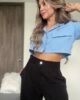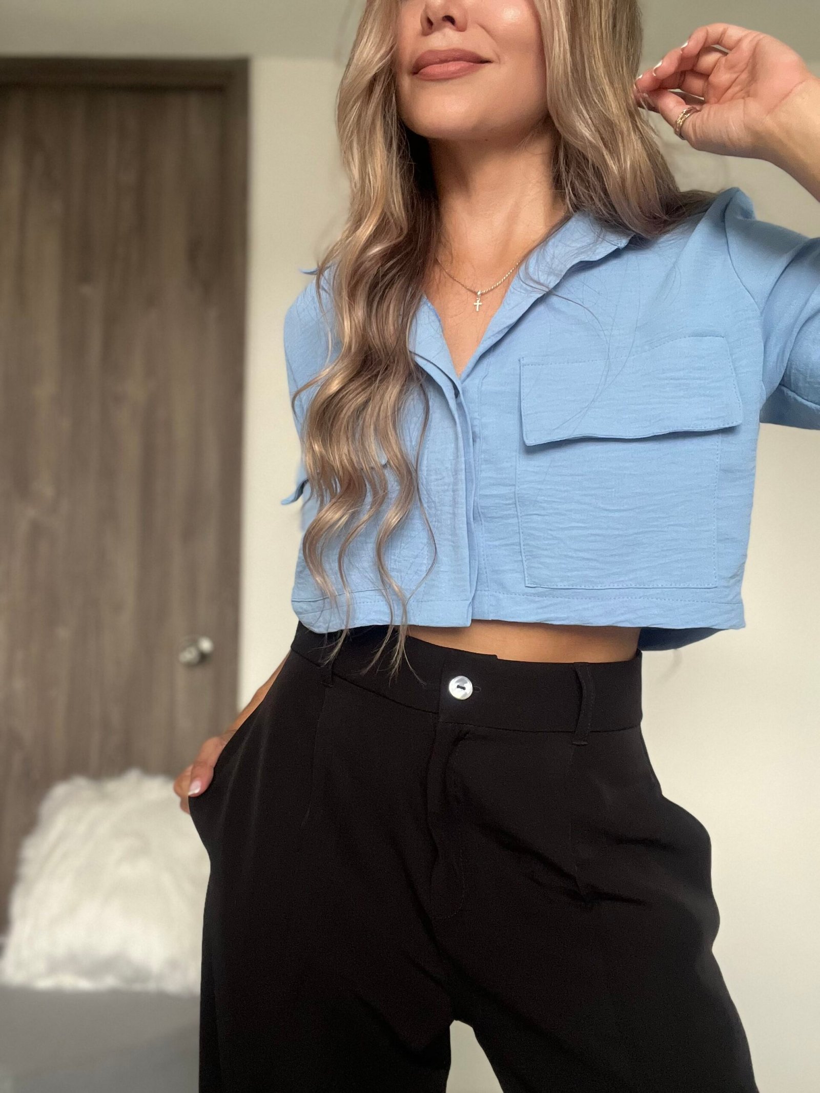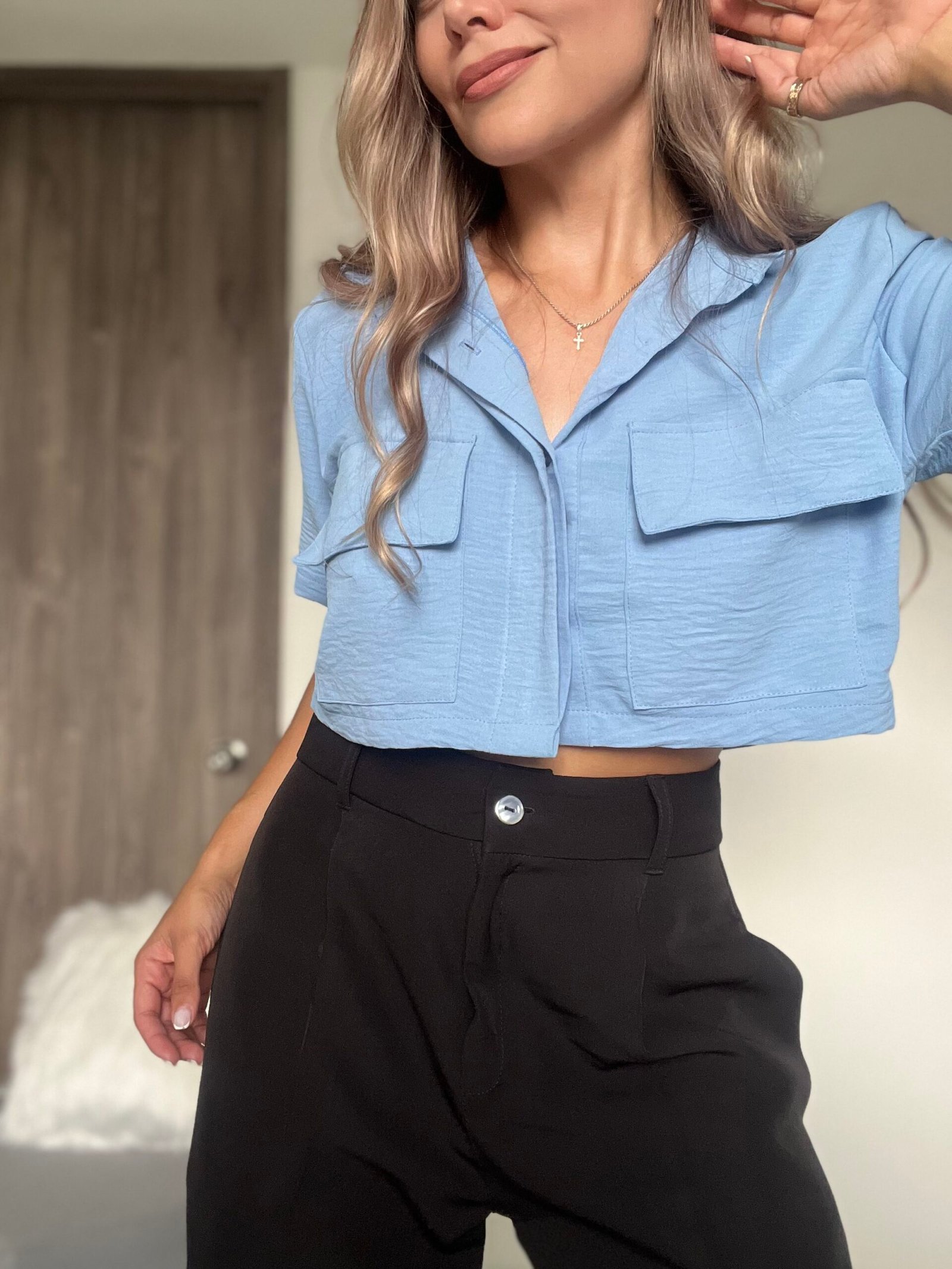 Ref. 053: Blusa corta con bolsillos parche - azul indigo