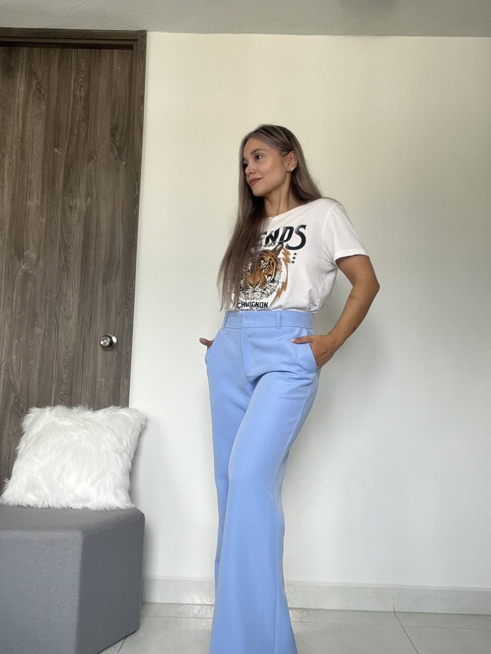 Ref. 057: Pantalón semicampana clásico - azul bebé