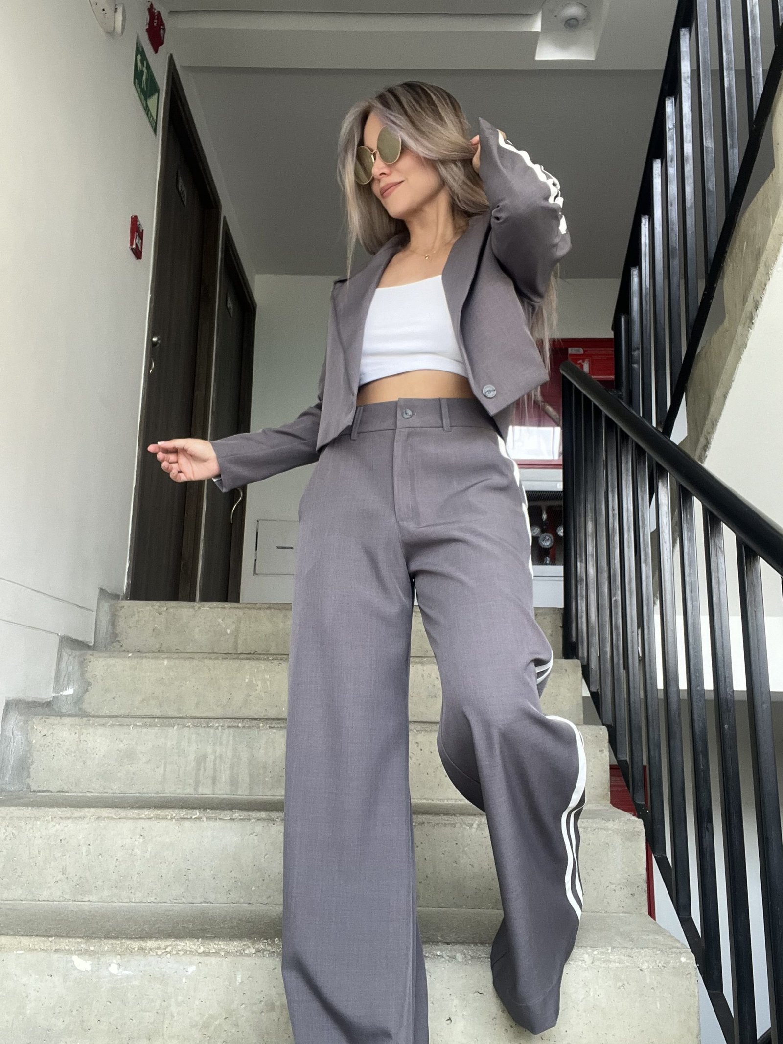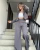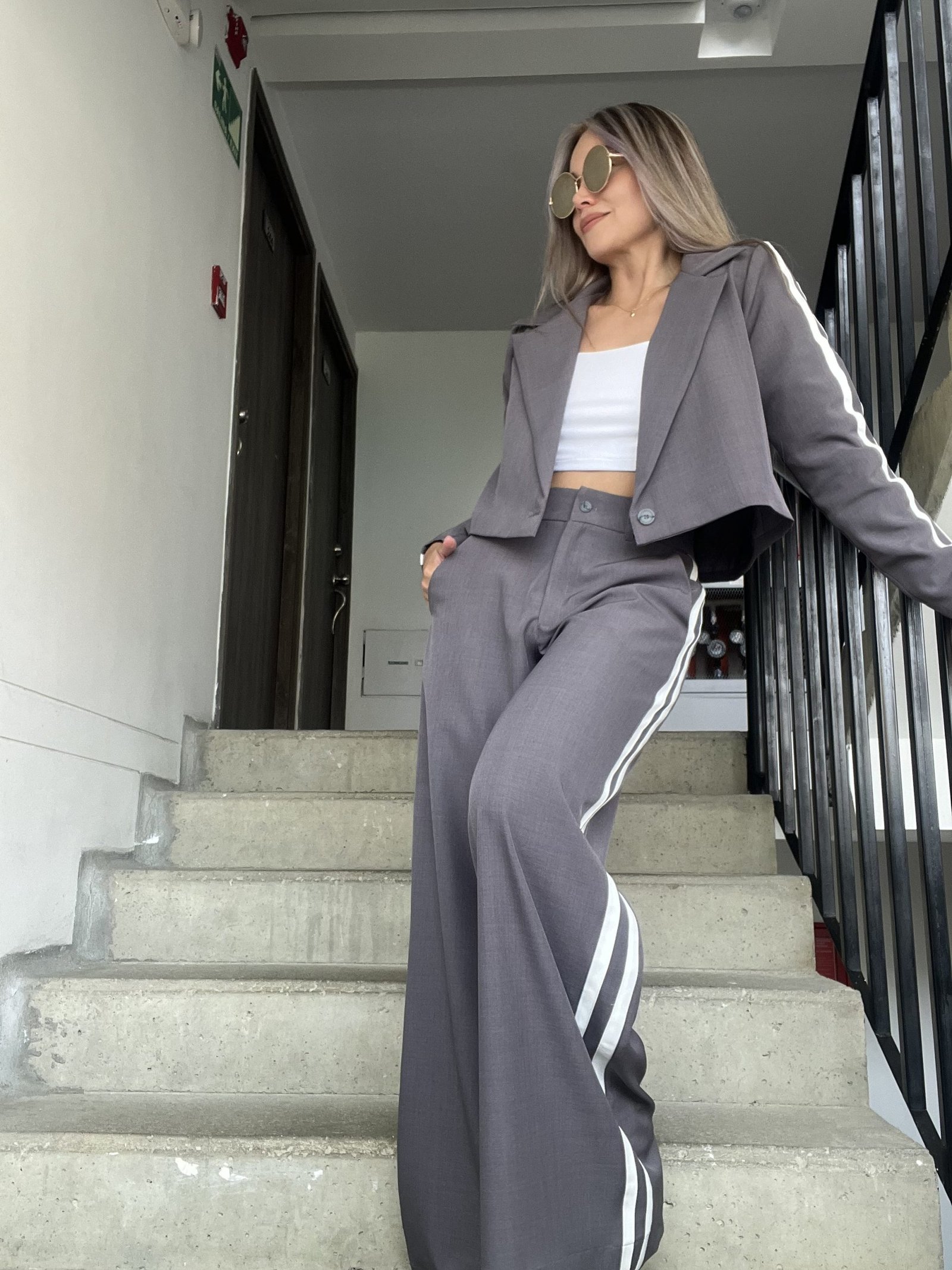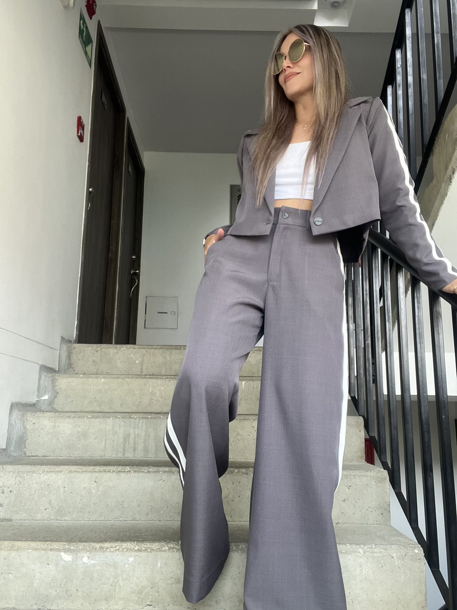 Ref. 058: Set pantalón y blazer corto con líneas al costado - gris
