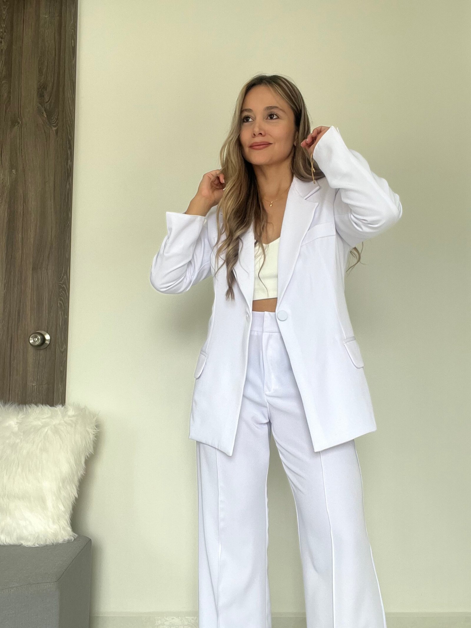 Ref. 067: Set formal pantalón y blazer semiceñido - blanco