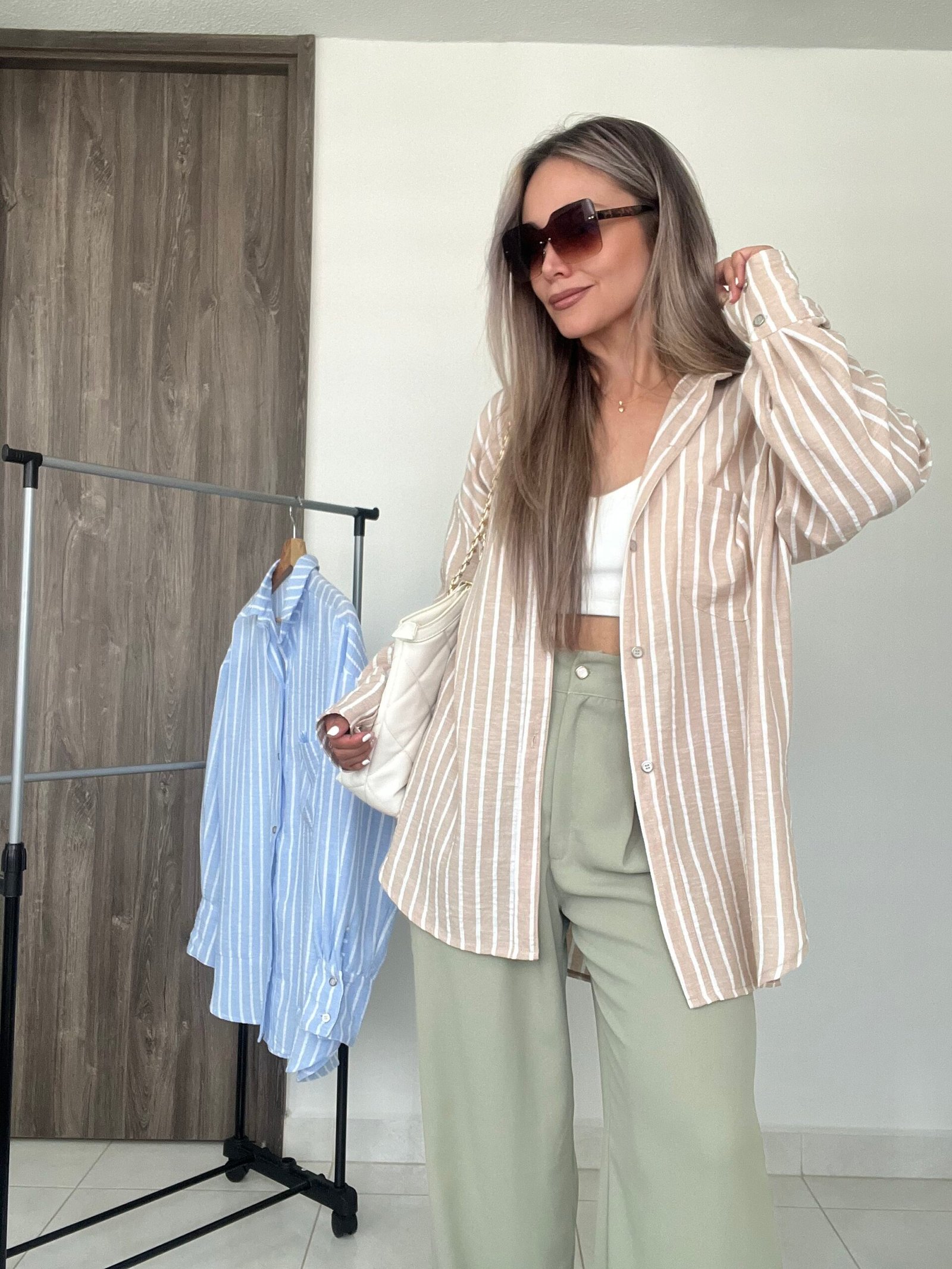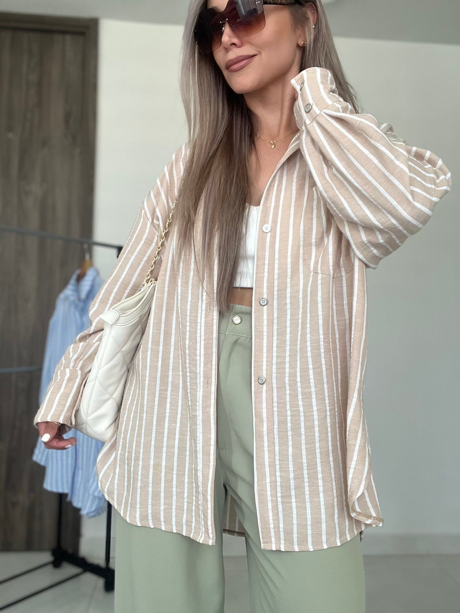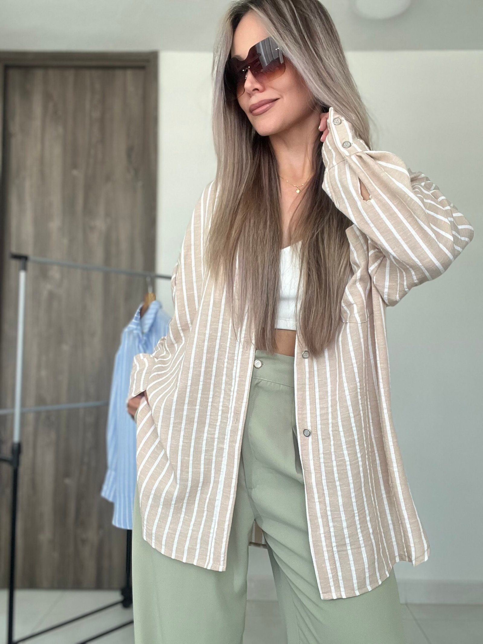 Ref. 068: Camisera oversize con abertura lateral - nude con rayas