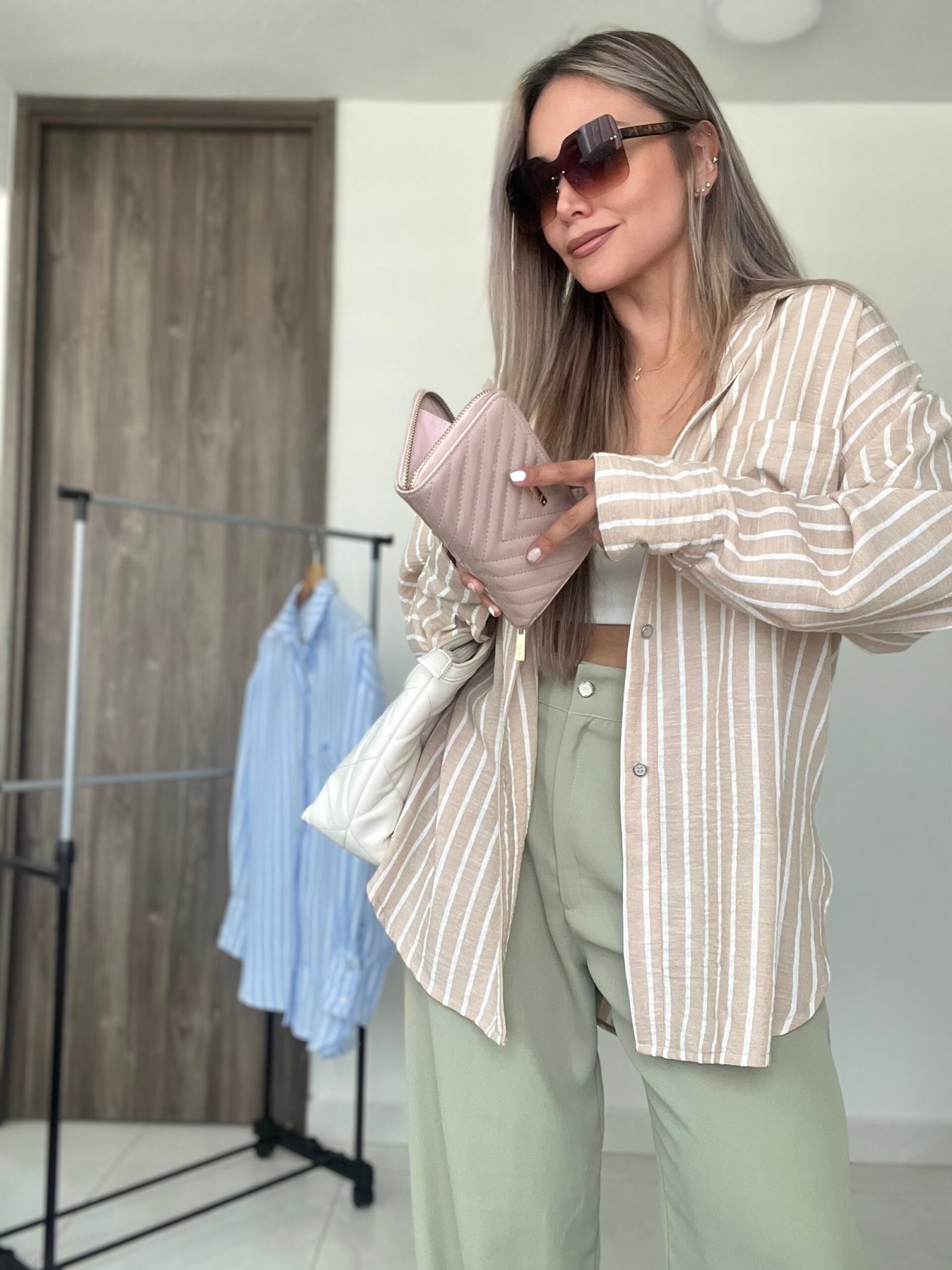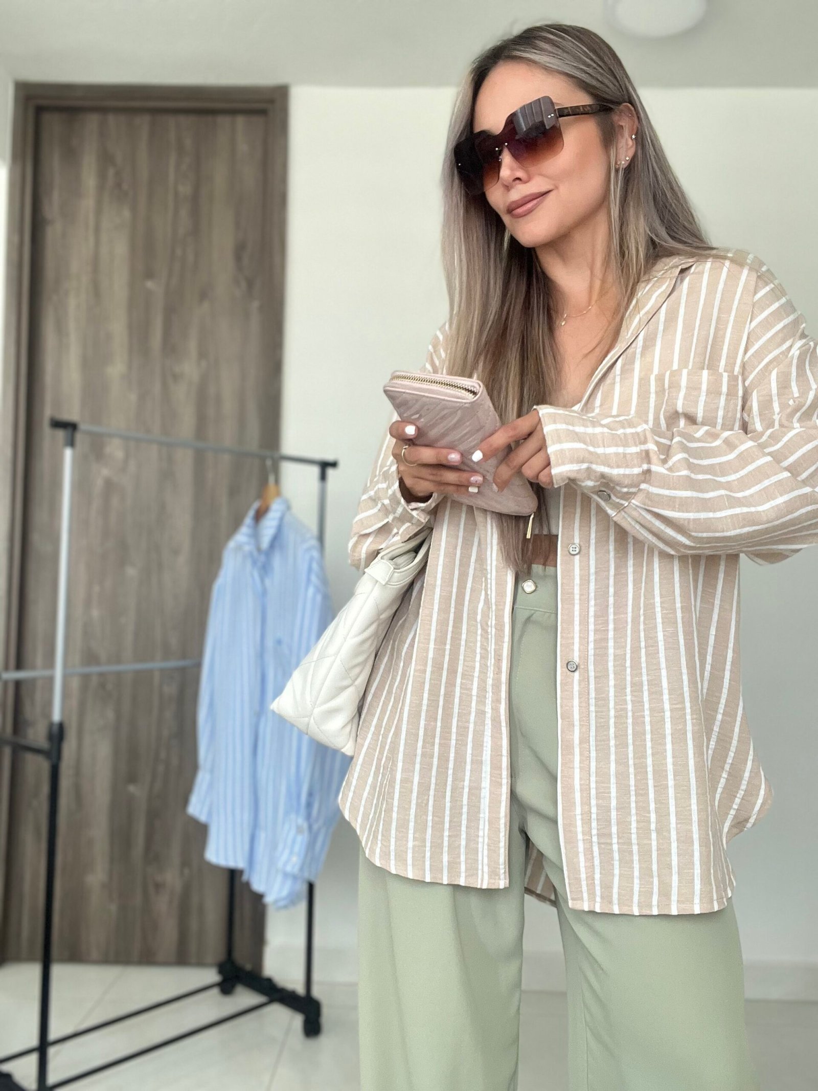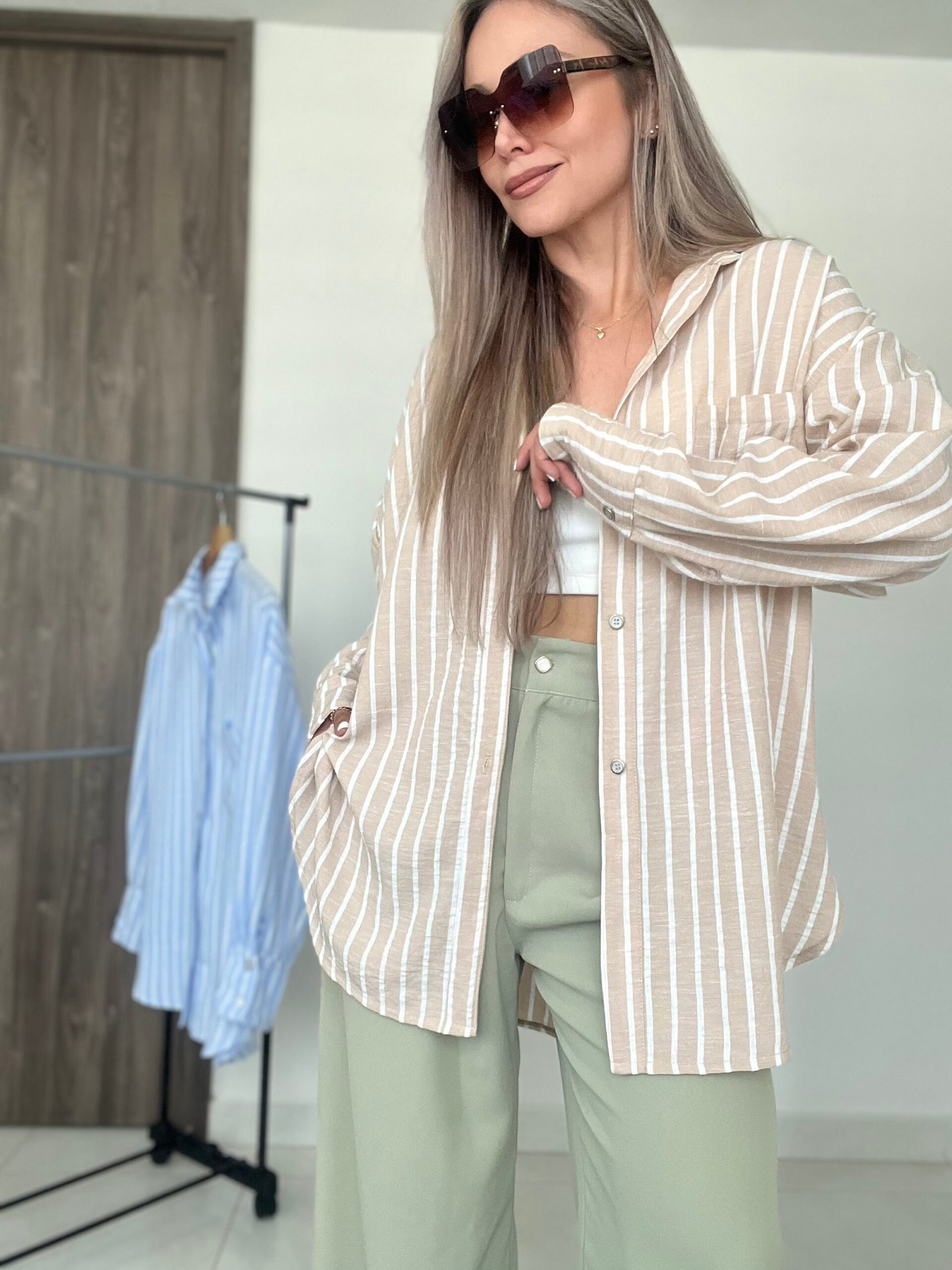 Ref. 068: Camisera oversize con abertura lateral - nude con rayas