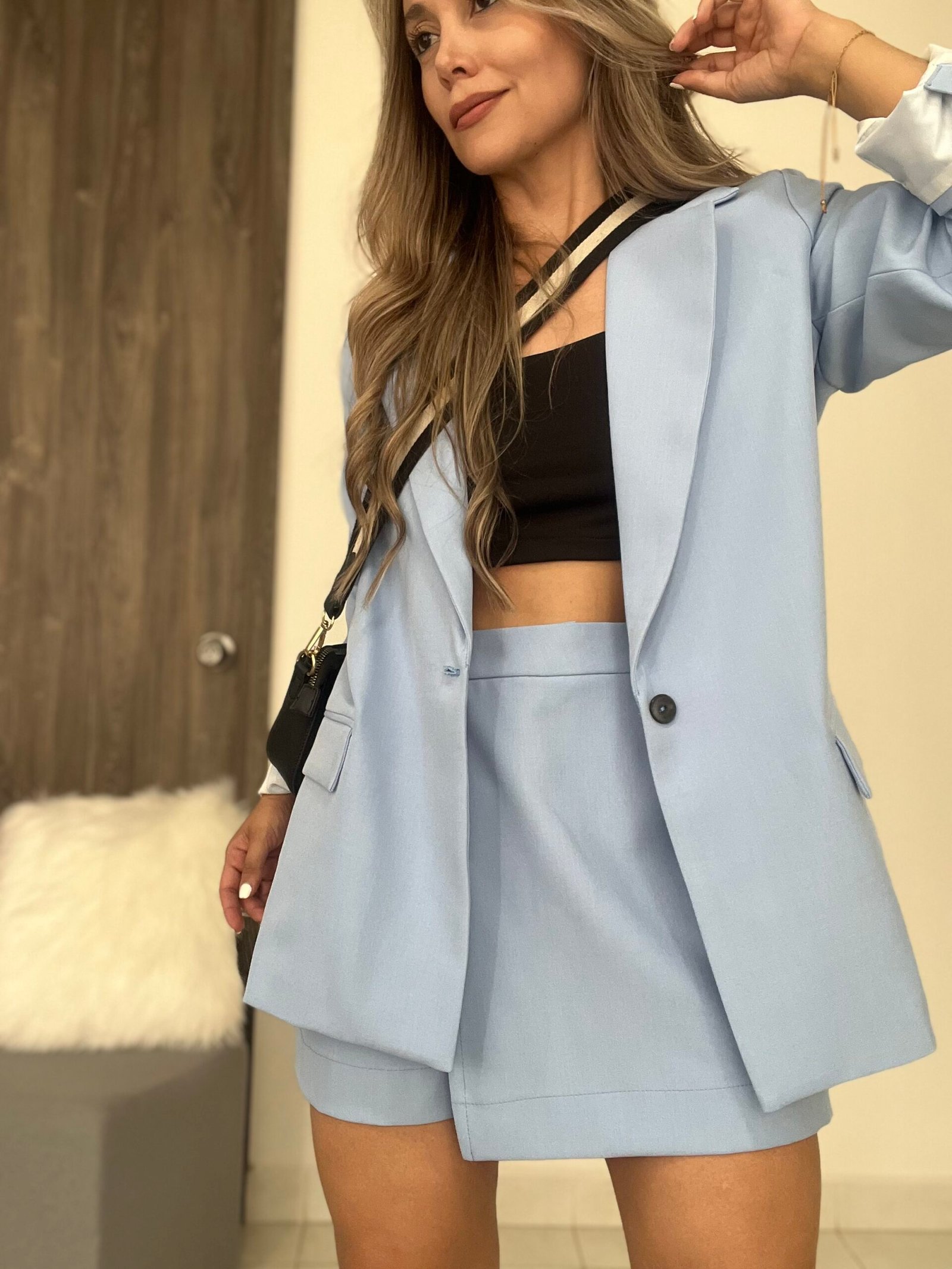 Ref. 069: Set blazer semioversize y falda/short - azul nude
