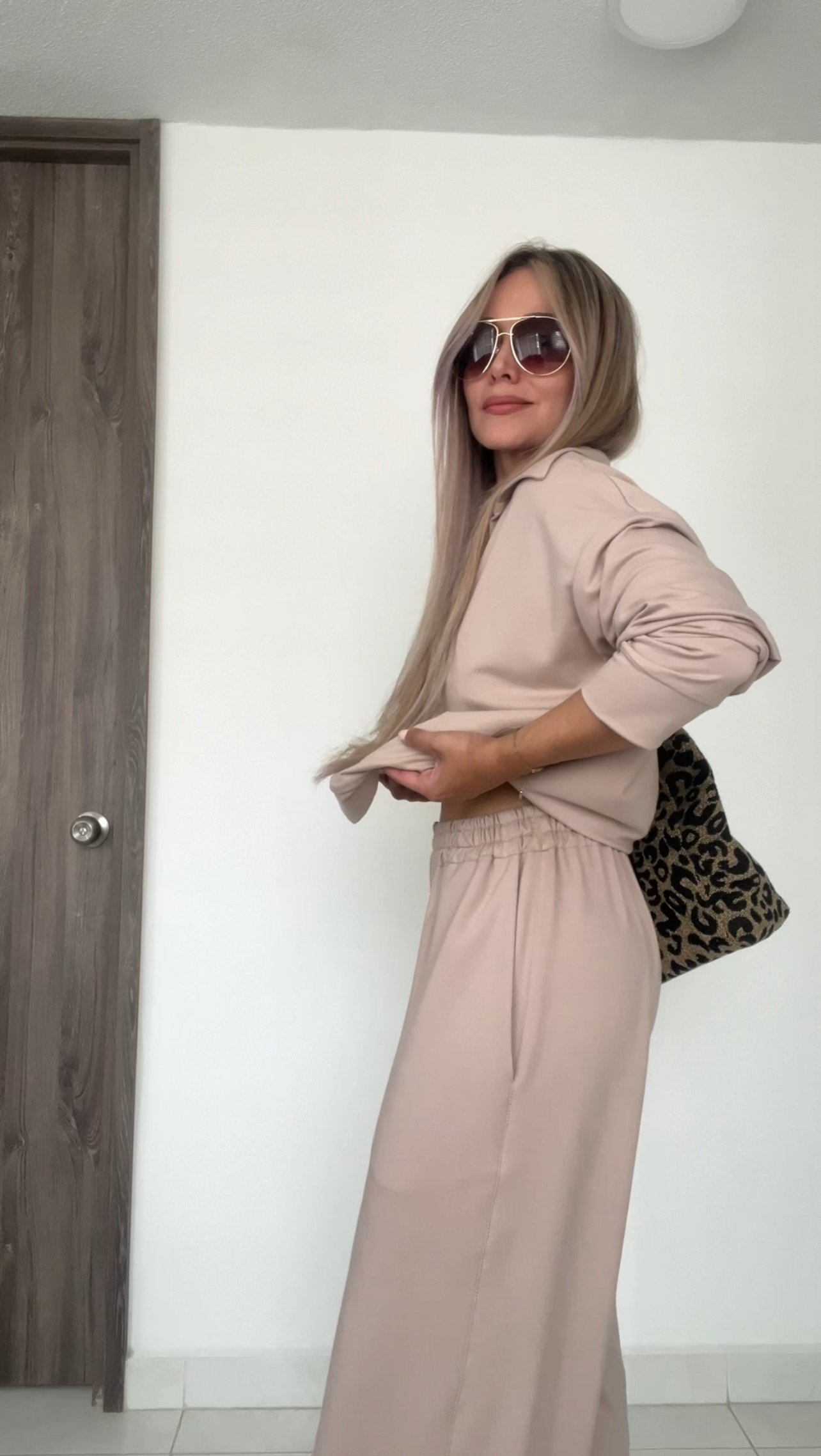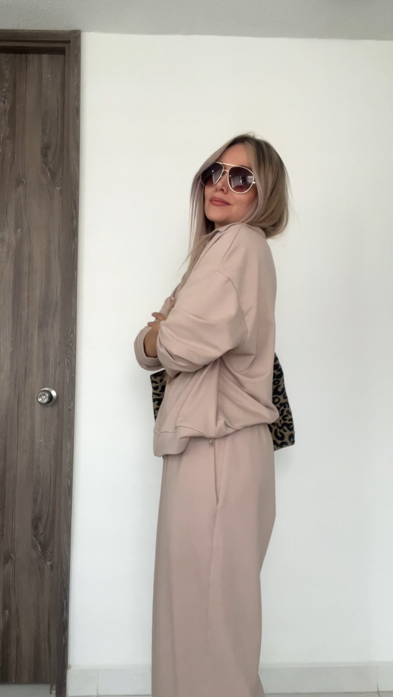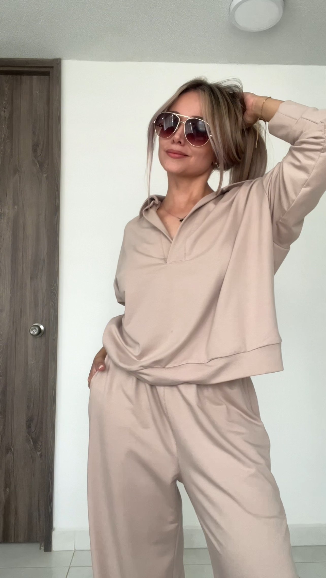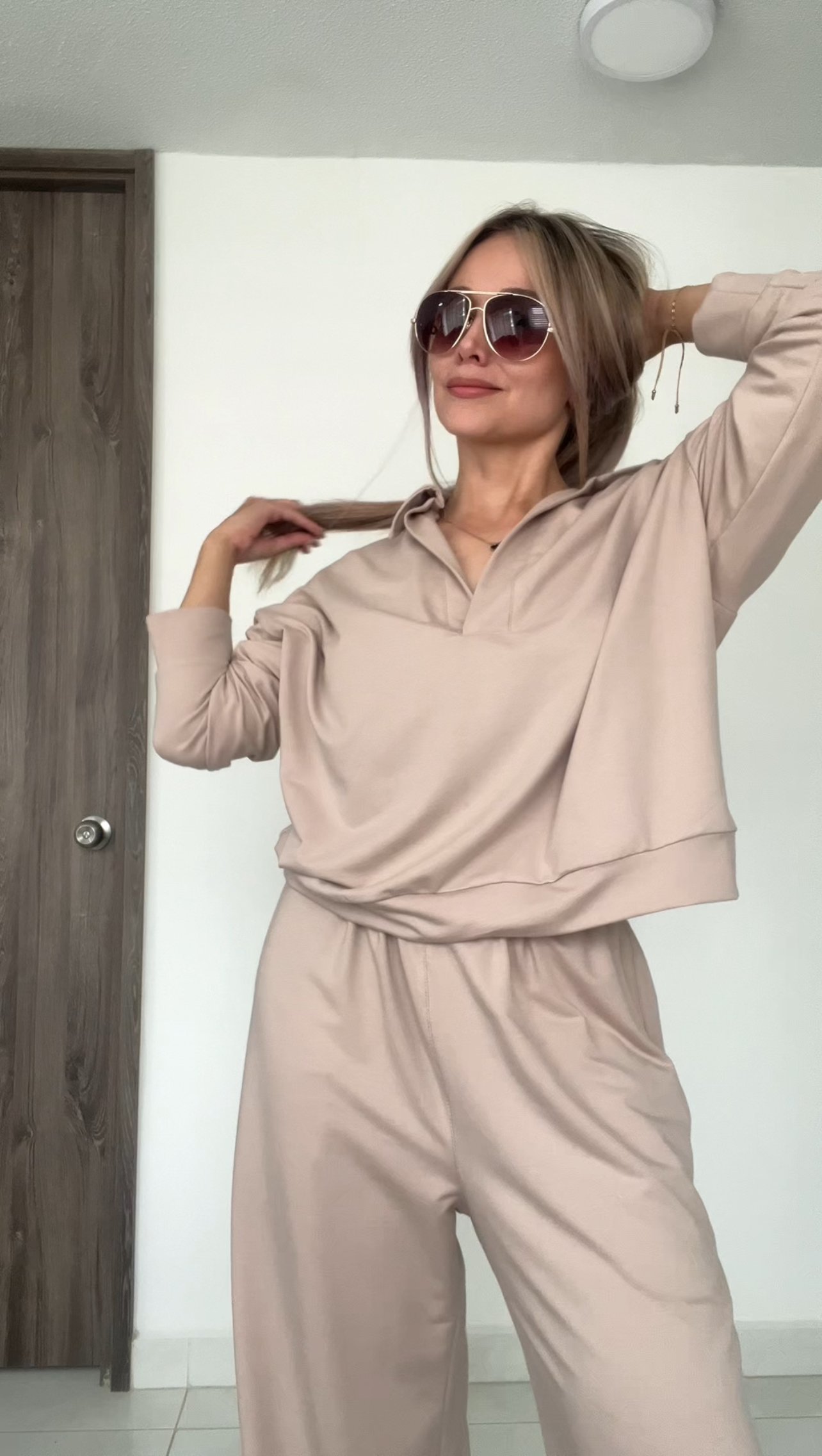 Ref. 075: Set viajero pantalón recto y buzo con cuello - nude