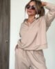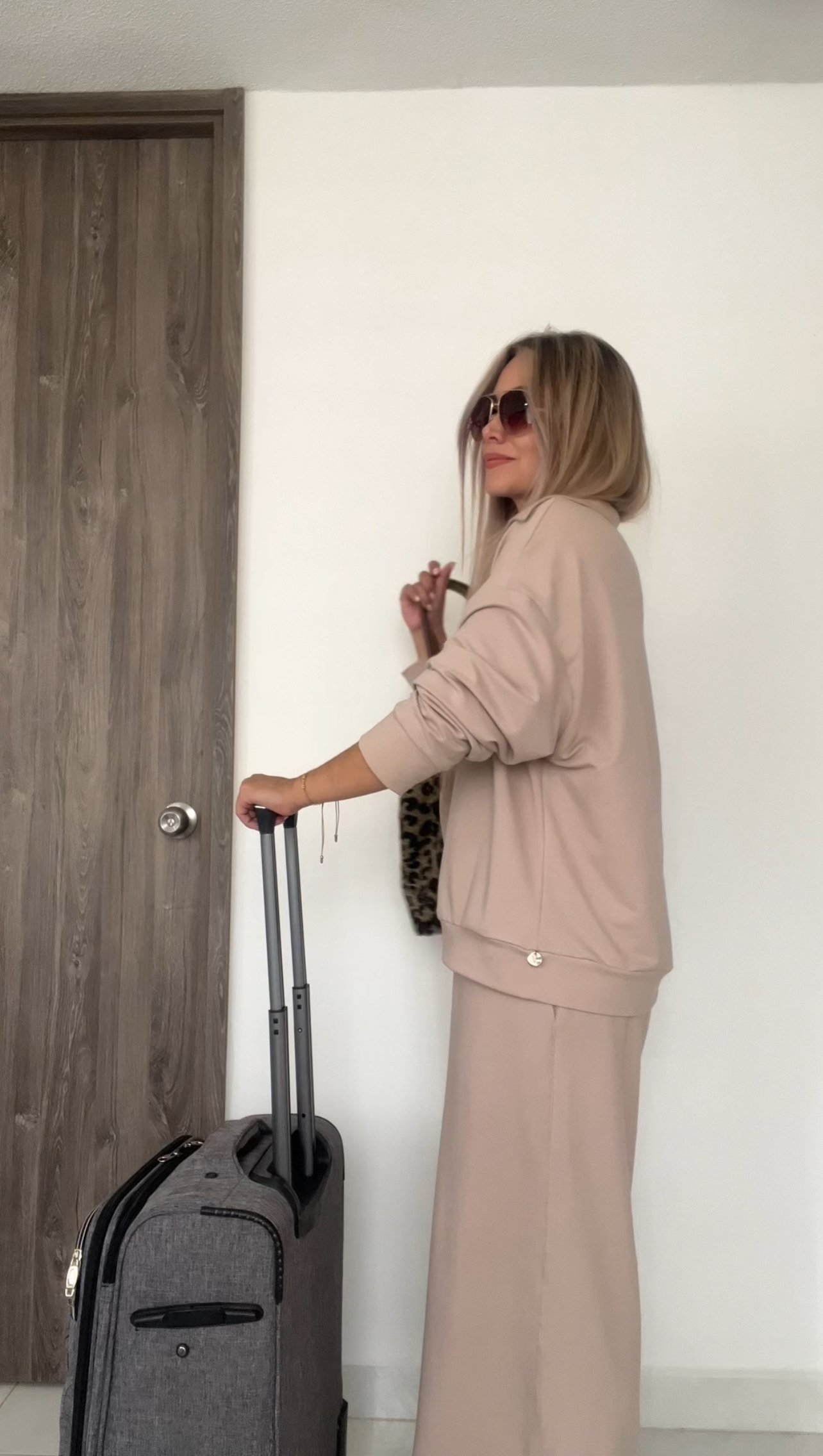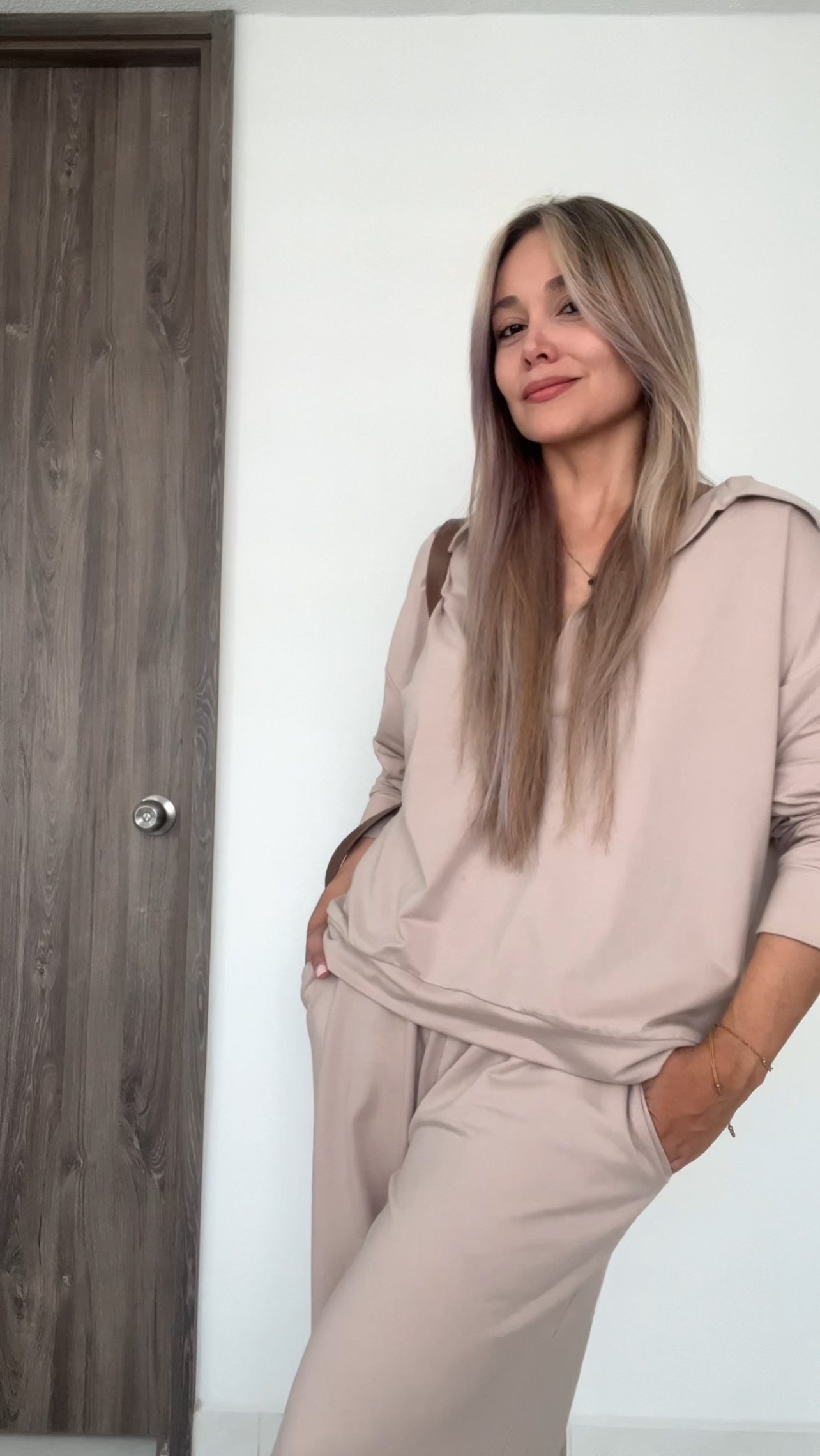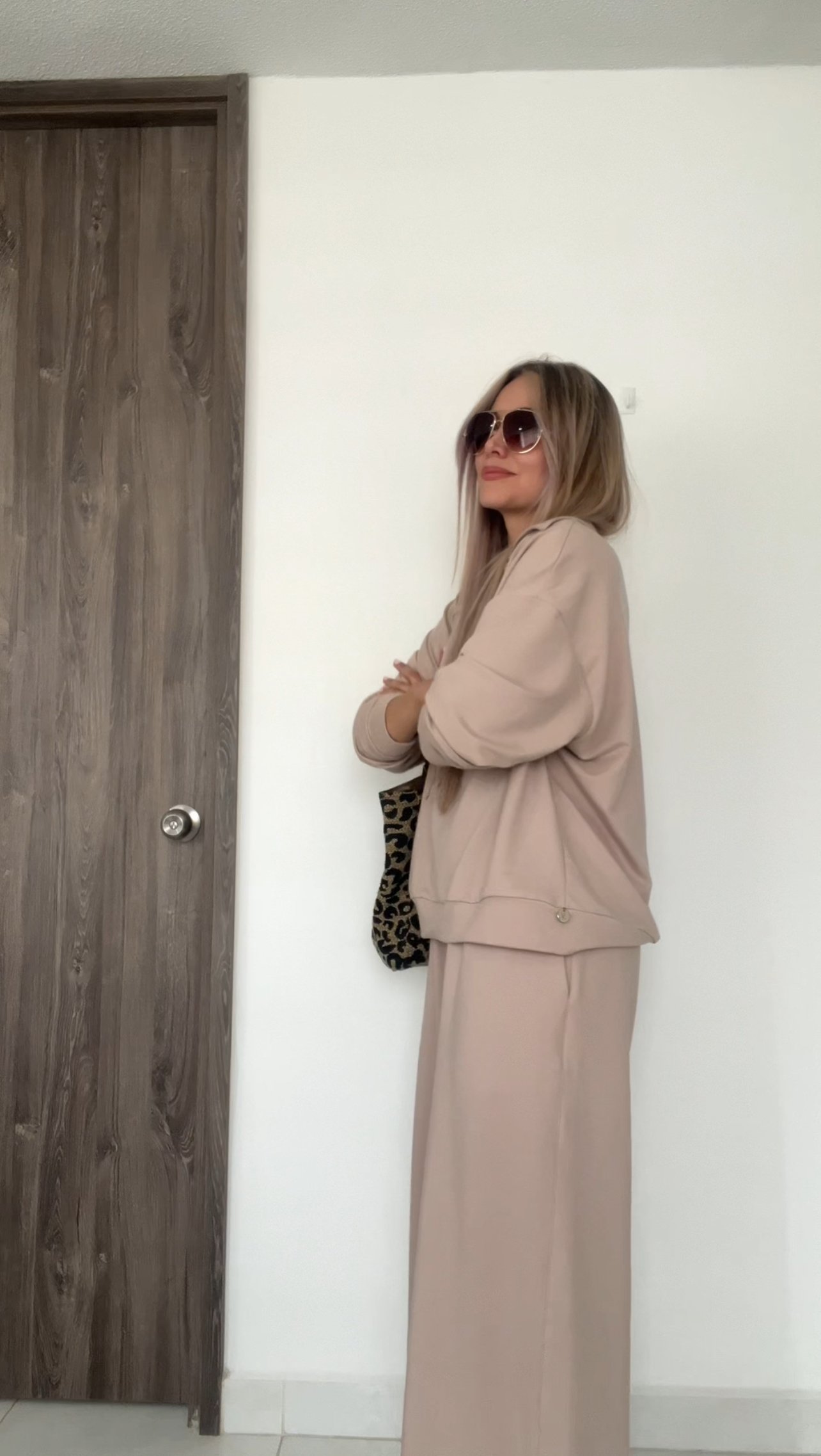 Ref. 075: Set viajero pantalón recto y buzo con cuello - nude