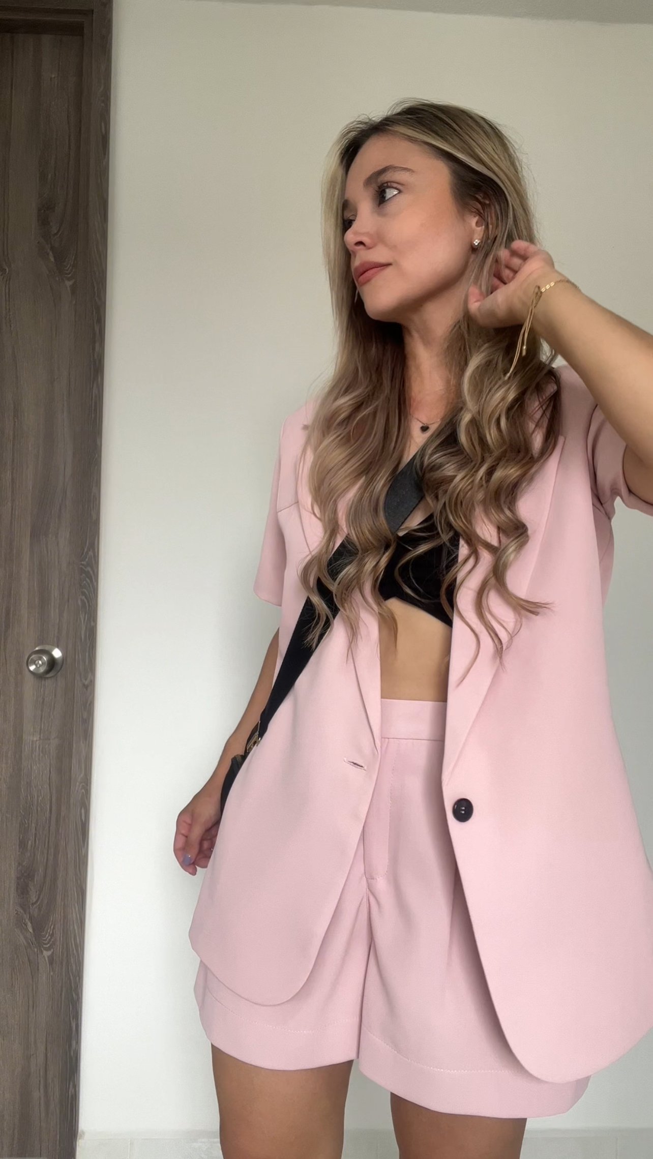 Ref. 078: Blazer semioversize manga corta y Short clásico - palo de rosa