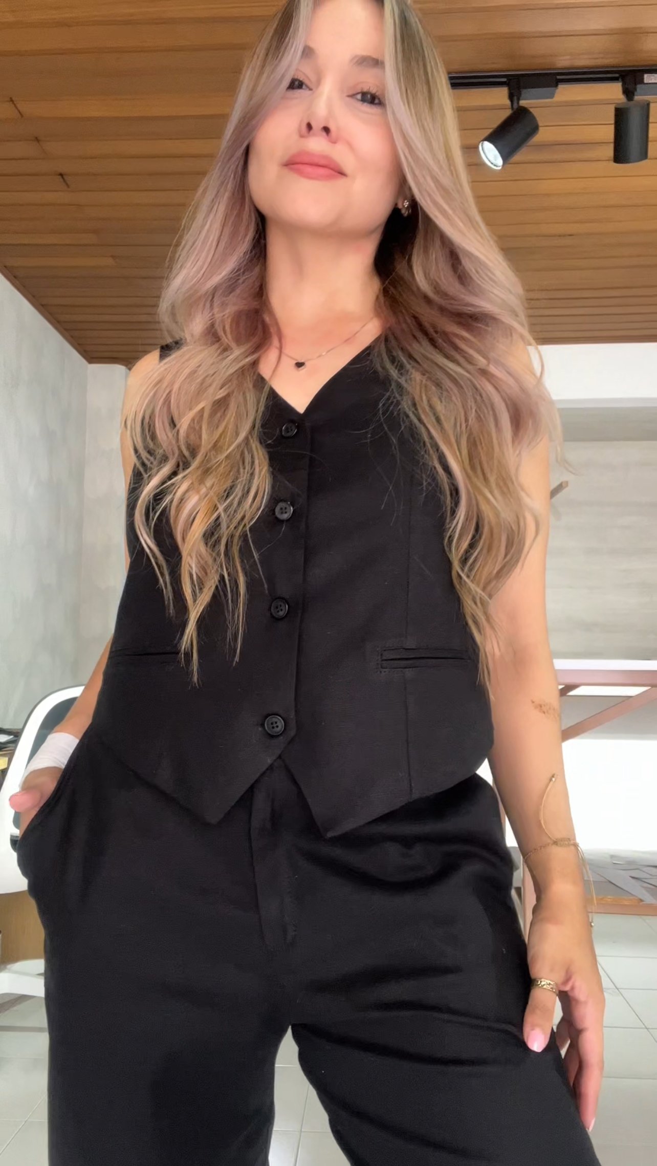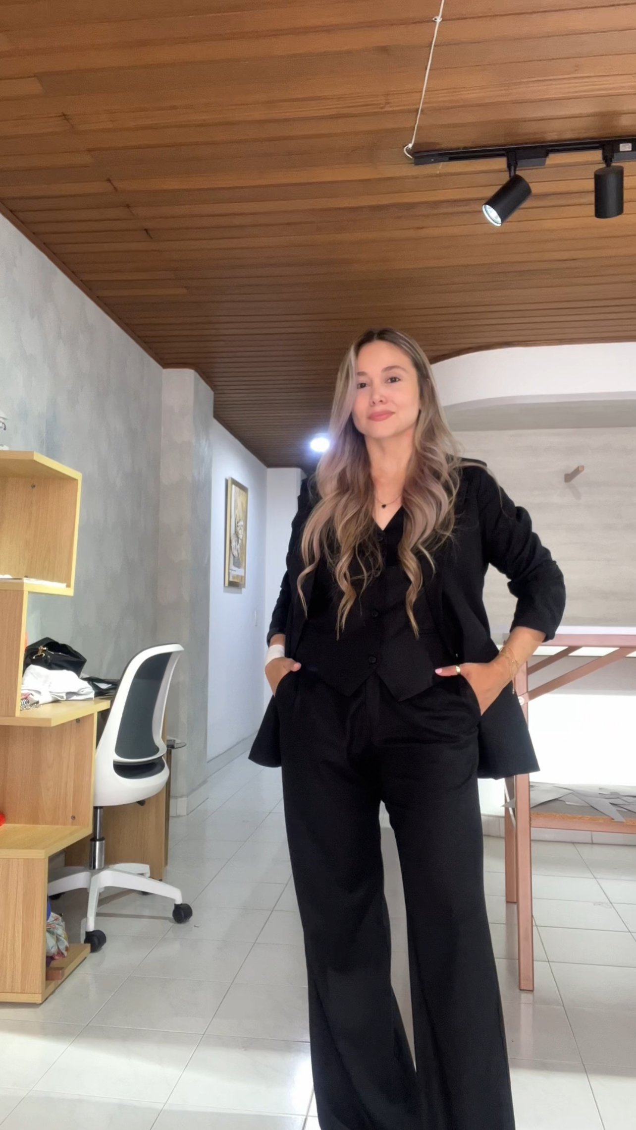 Ref. 083: Blazer, Chaleco y Pantalón en lino - negro