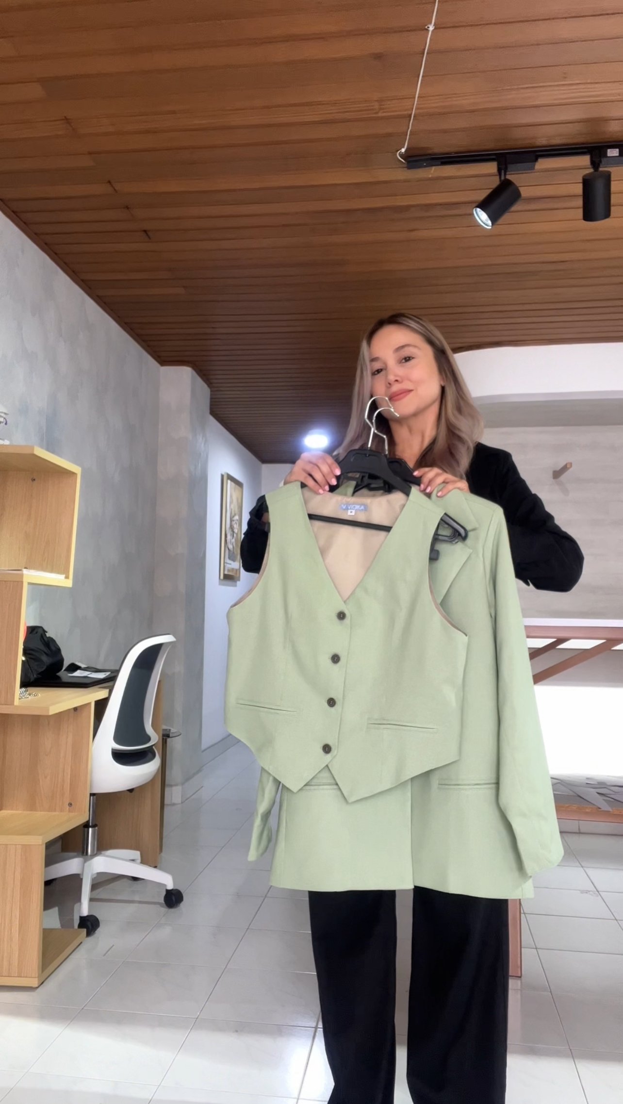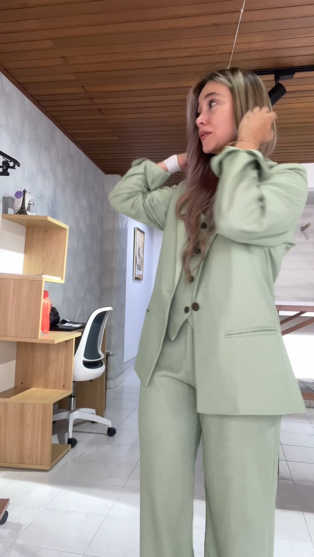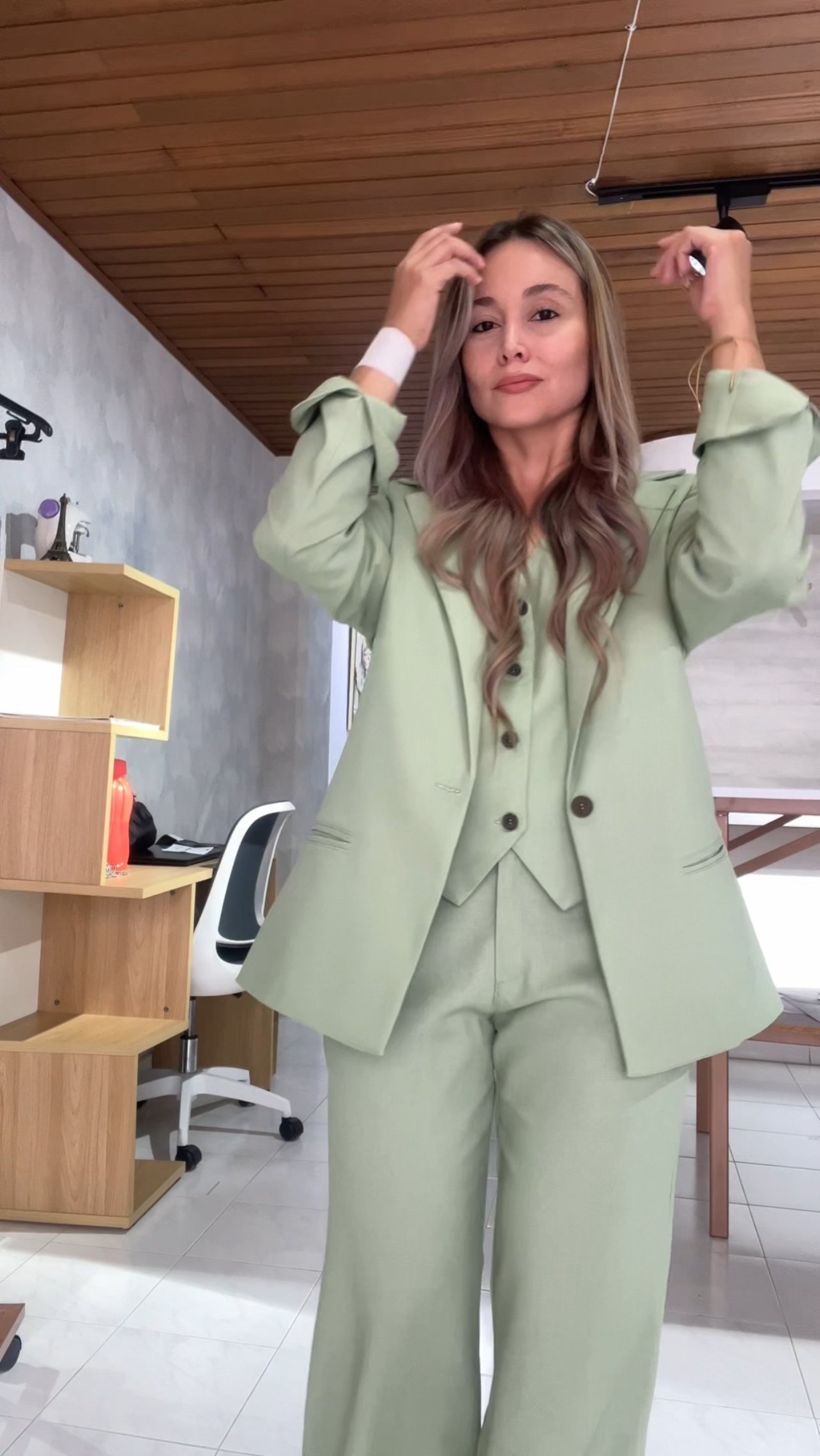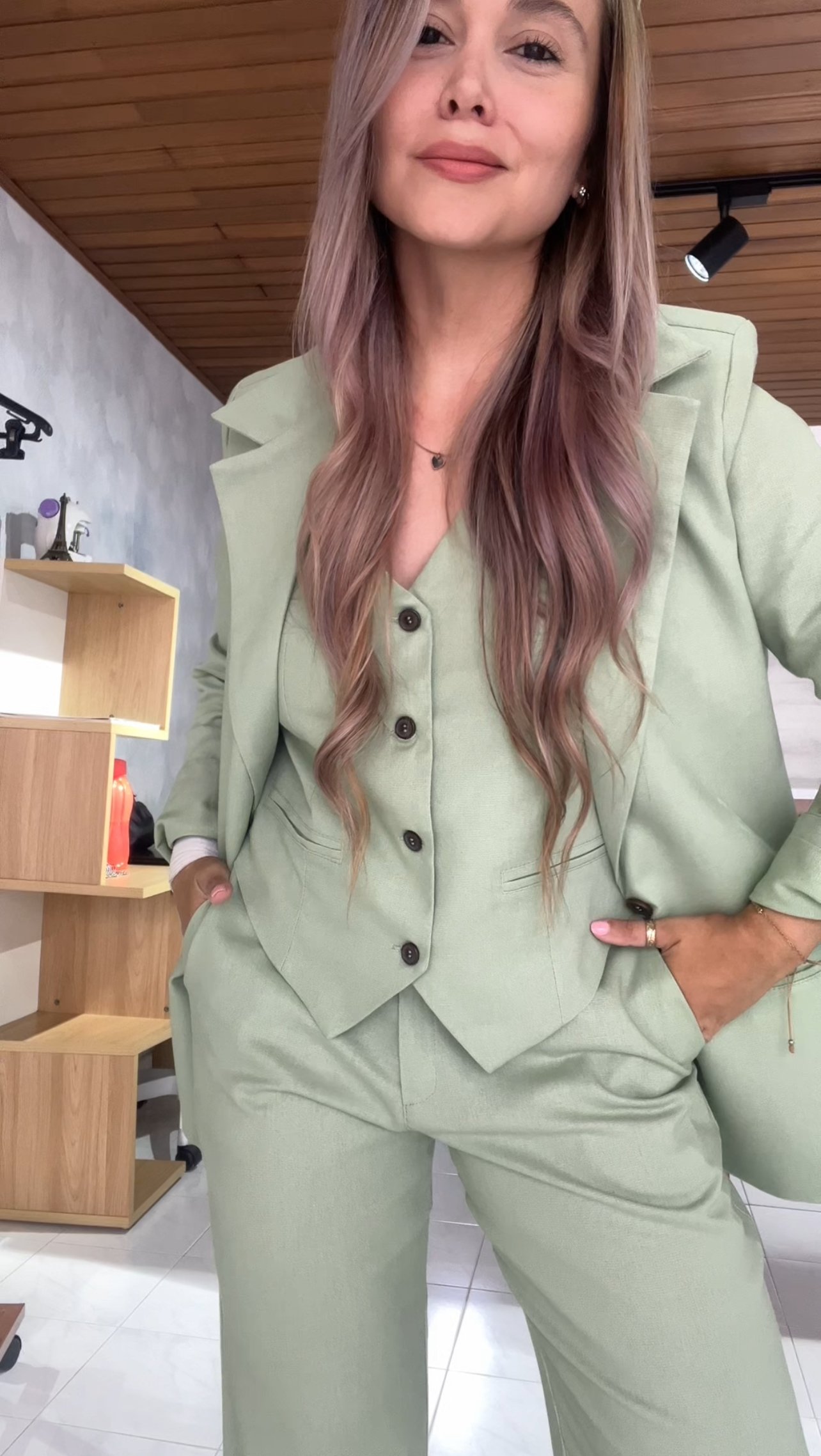 Ref. 083: Blazer, Chaleco y Pantalón en lino - verde menta