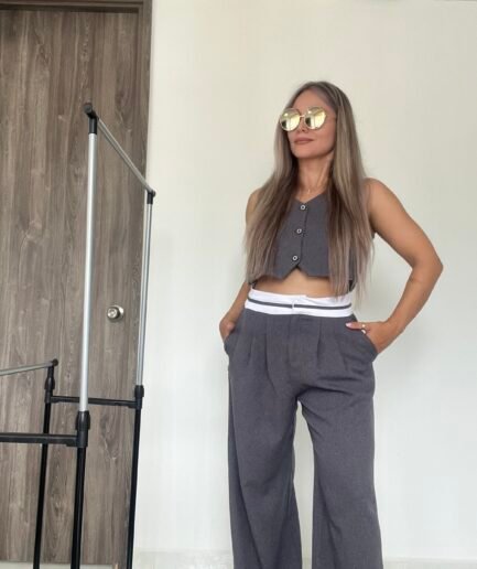 Seleccionar opciones Este producto tiene múltiples variantes. Las opciones se pueden elegir en la página de productoRef. 056: Set pantalón pretina blanca y chaleco corto – humo