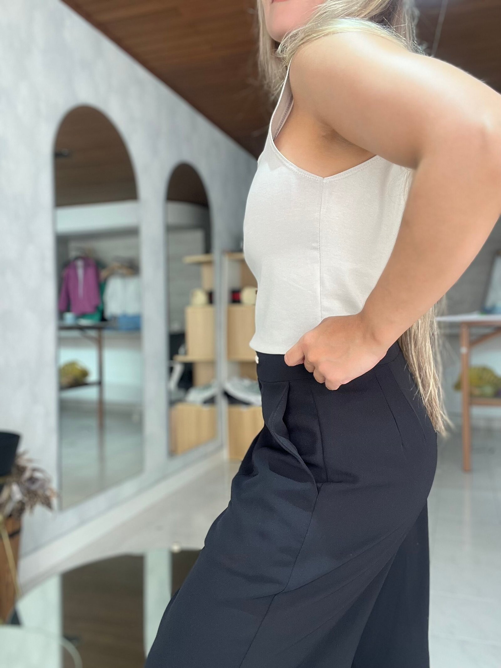 Blusa sisa con cuello ovalado. Para usar por dentro. Paquete por dos colores: Negro y Beige.