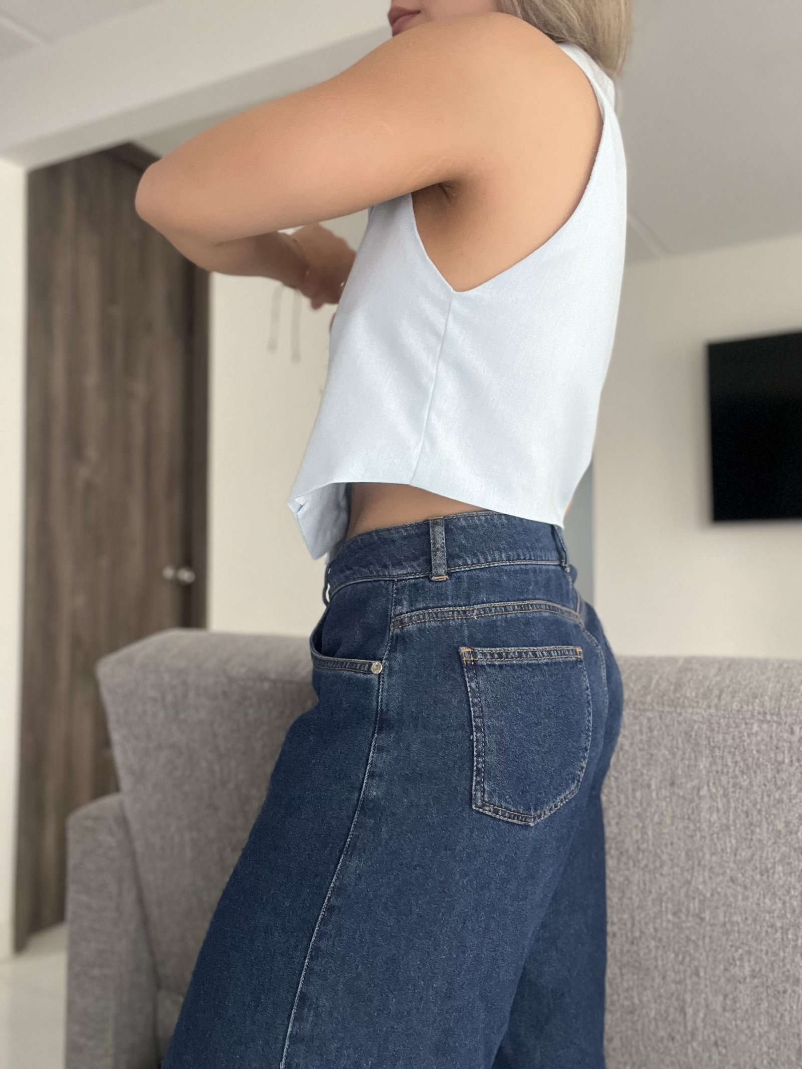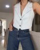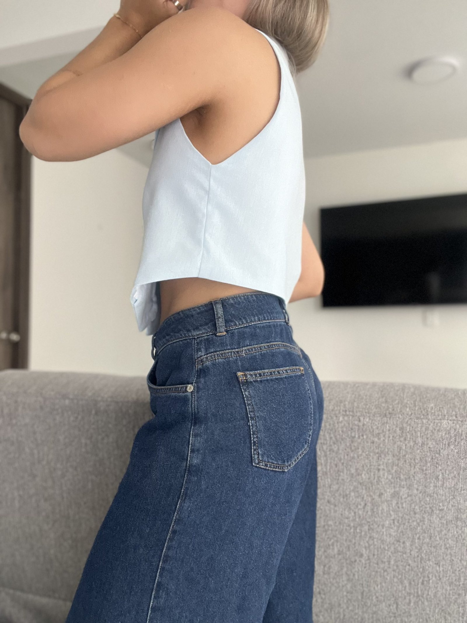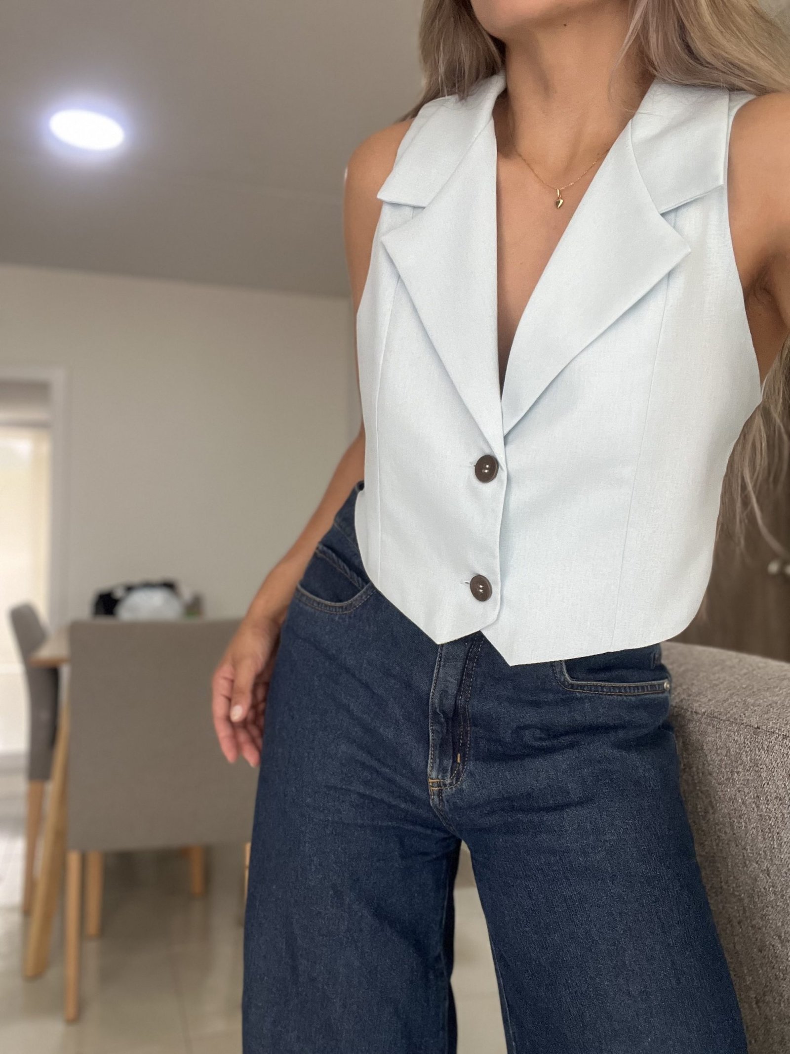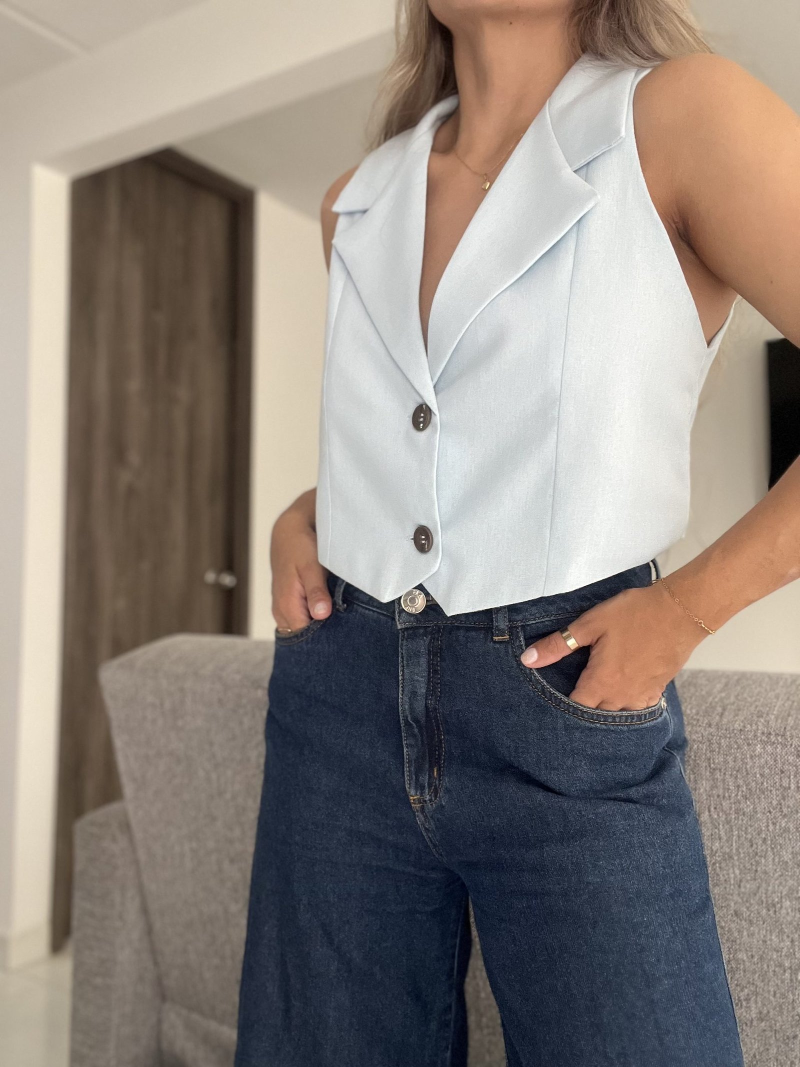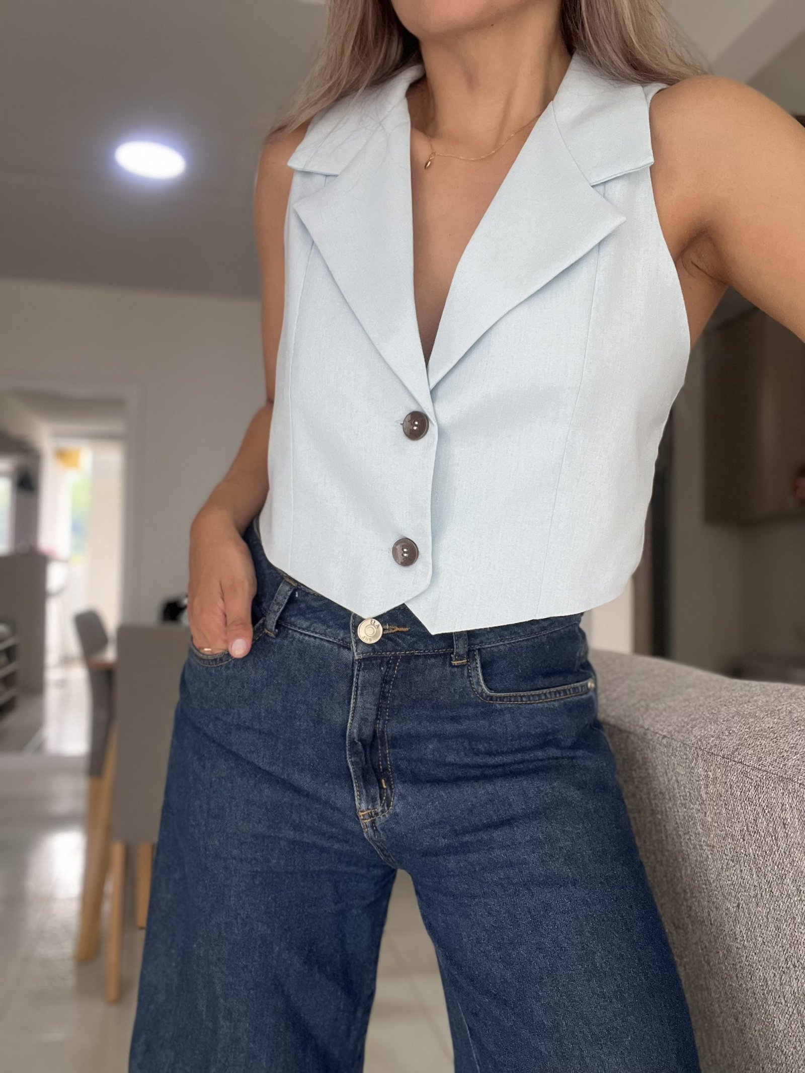 Ref. 064: Chaleco corto en lino con cuello - azul cielo