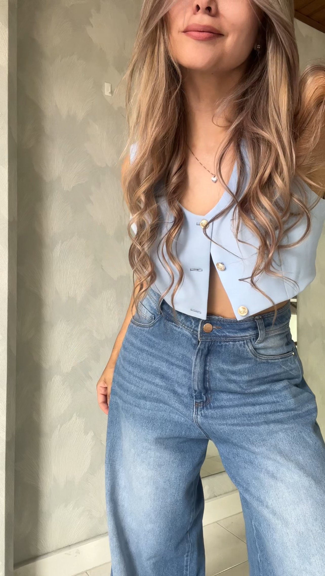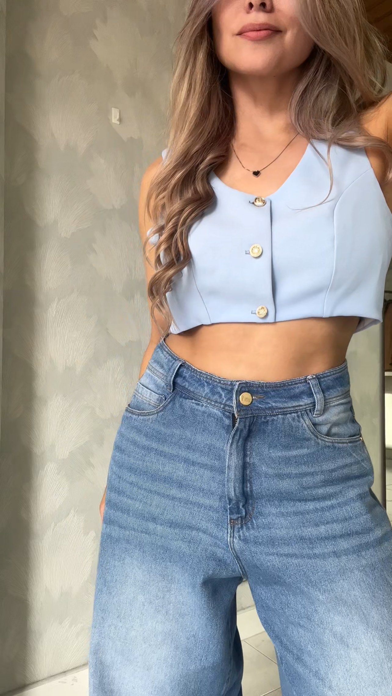 Ref. 077-1: Chaleco estilo croptop - azul bebé