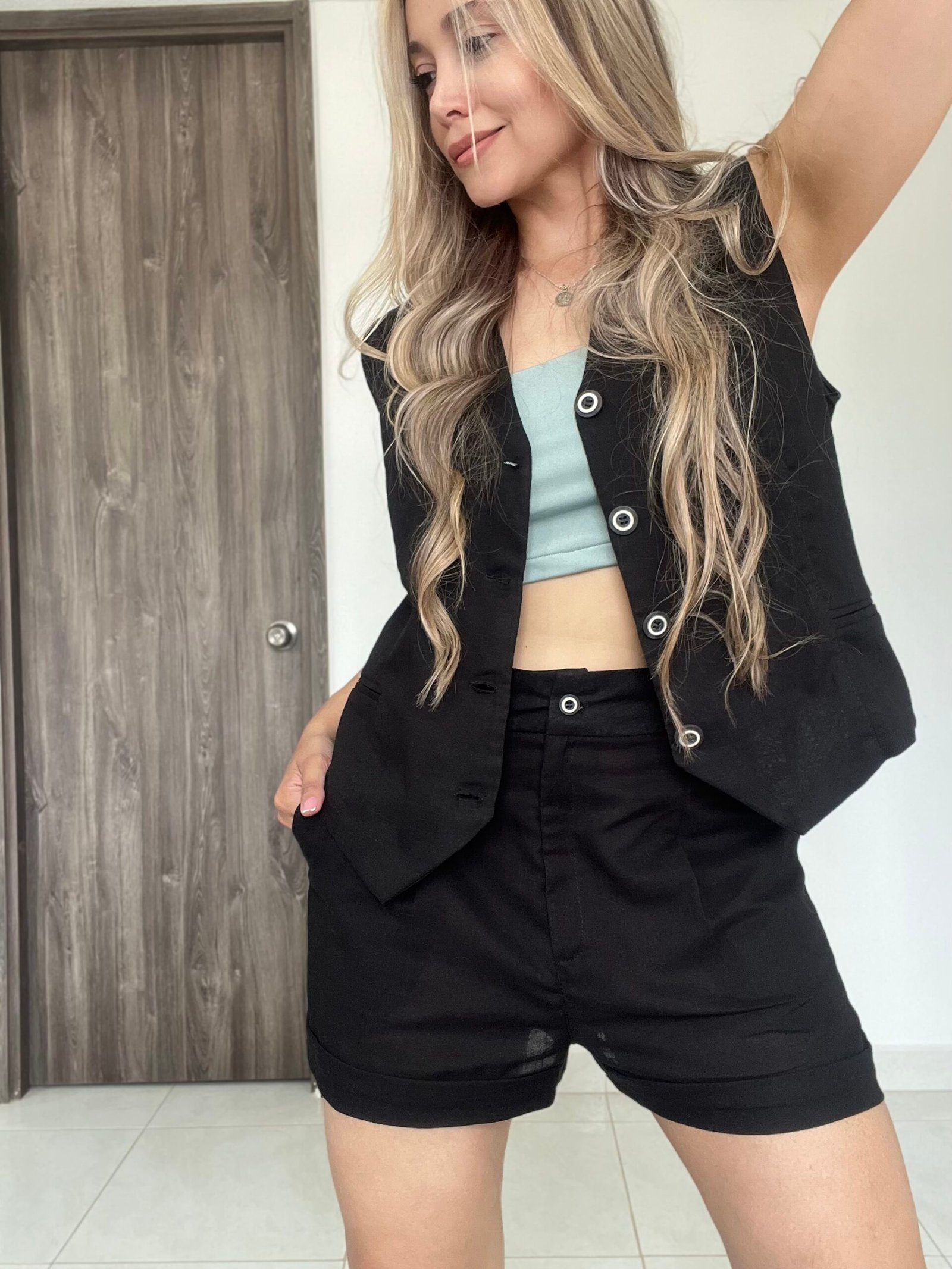 Ref. 014: Set chaleco y short en color negro