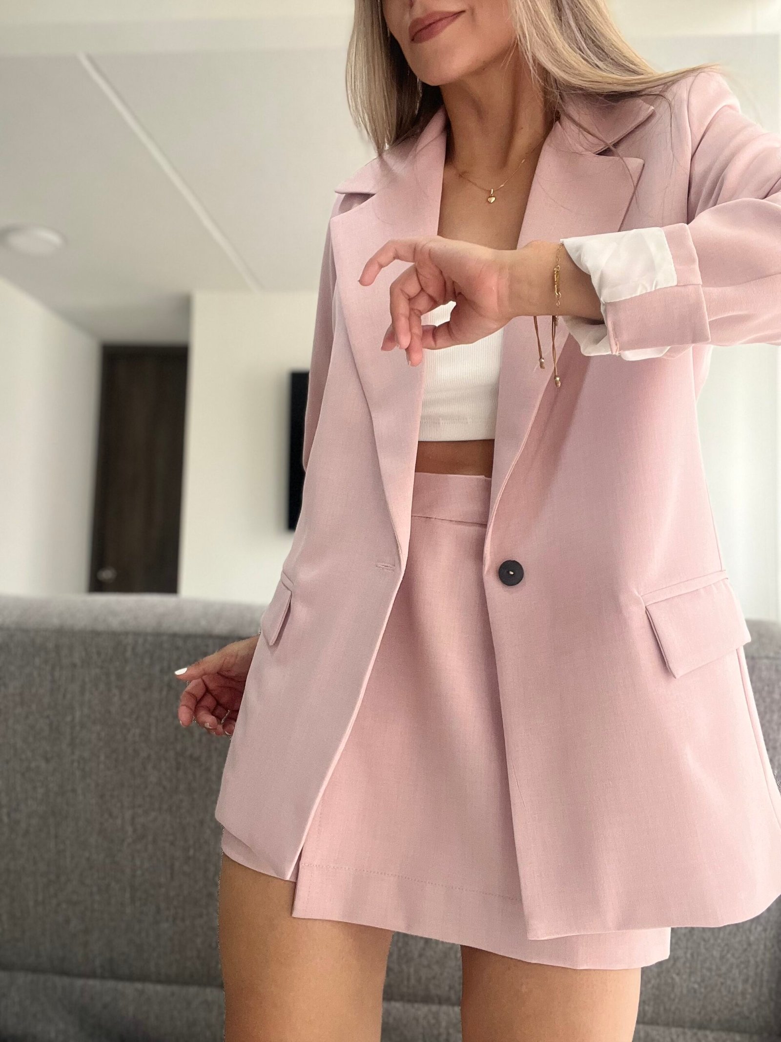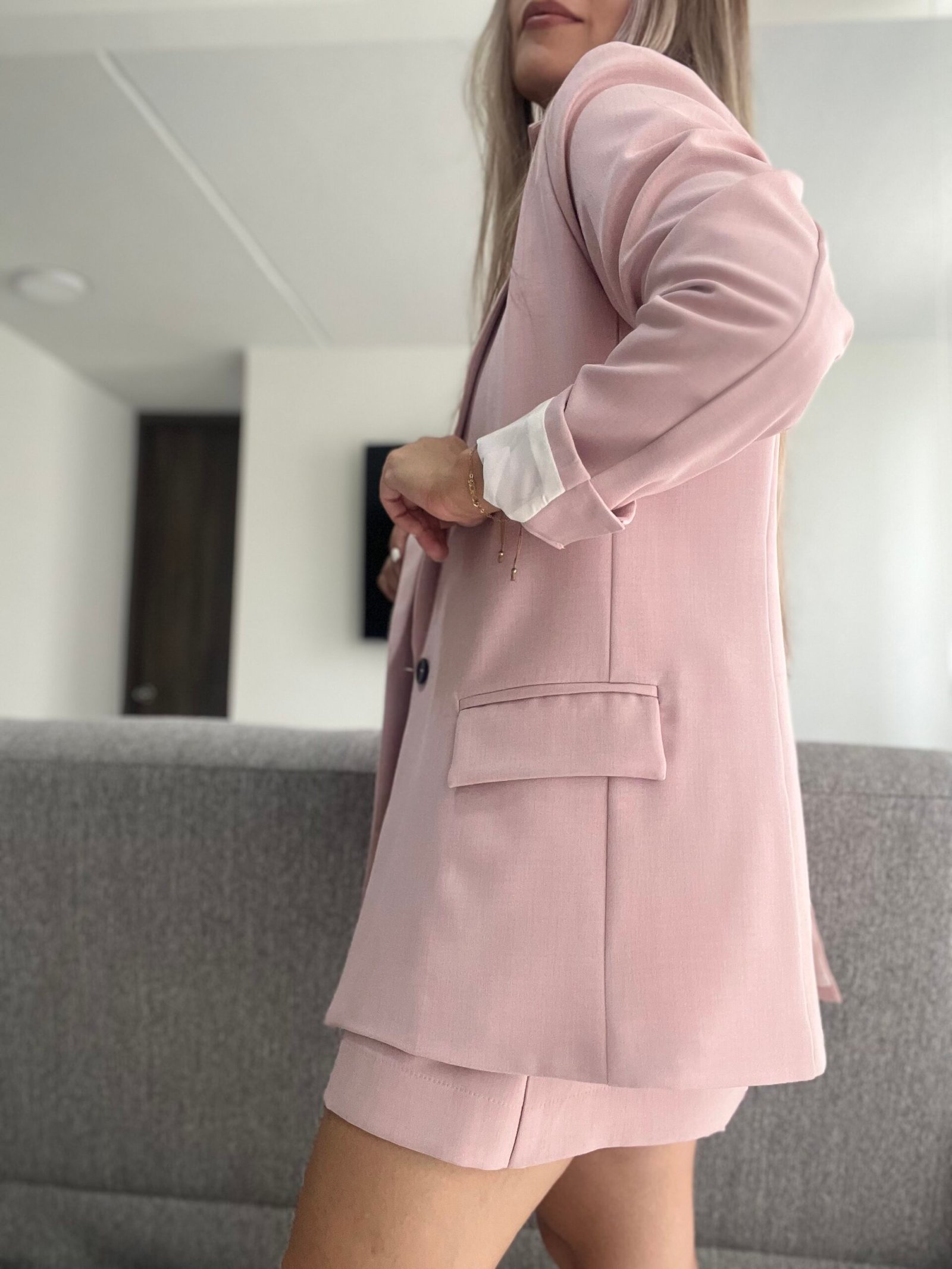 Ref. 069: Set blazer semioversize y falda/short - rosa nude