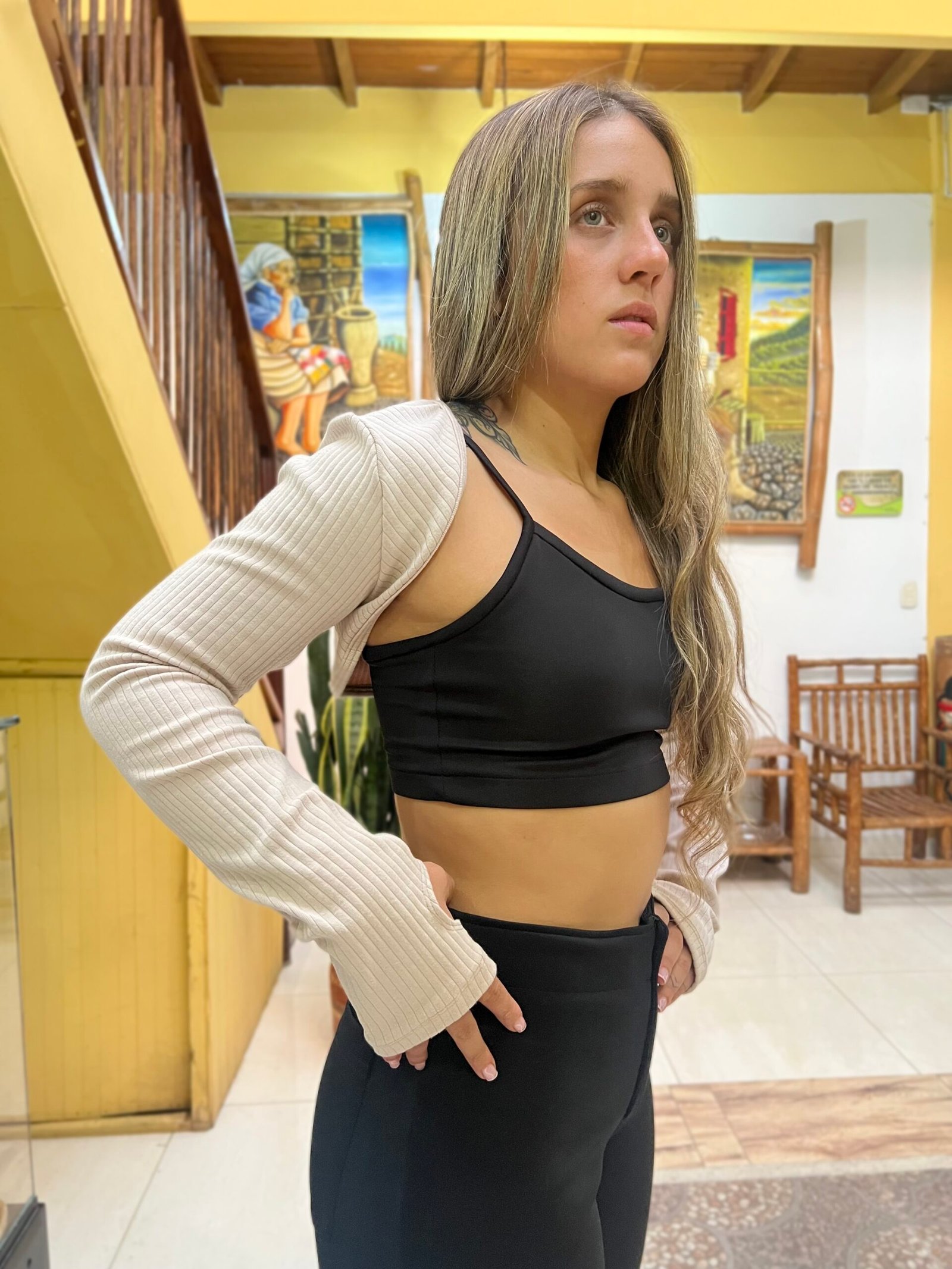 Mangas sobrepuestas como detalle decorativo de un outfit. Confeccionadas en Rib, con diseño largo hasta la mano y una abertura que da un efecto de guante. *Las fotos se tomaron con la talla M*