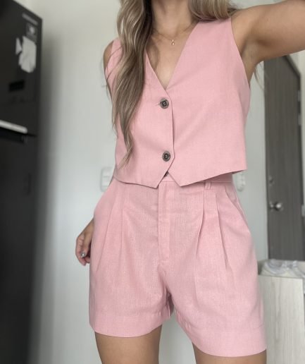 Ref. 061: Set en lino chaleco y short – palo de rosa